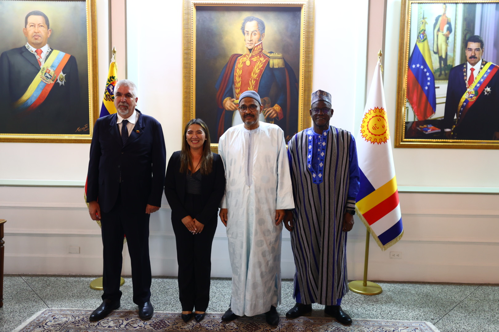 Junto a ministros del Gobierno Bolivariano, el viceministro Yuri Pimentel participó además en el recibimiento de las delegaciones de Mali, encabezada por Hameye Foune Mahalmadane, 4° vicepresidente del Consejo Nacional de Transición (CNT); Burkina Faso, liderada por Ousmane Bougouma, presidente de la Asamblea Legislativa de Transición; Namibia, a cargo de Jenelly Matundu, viceministra de Relaciones Internacionales y Cooperación; y de Uganda, representado por Odongo Jeje Abu, ministro de Relaciones Exteriores.