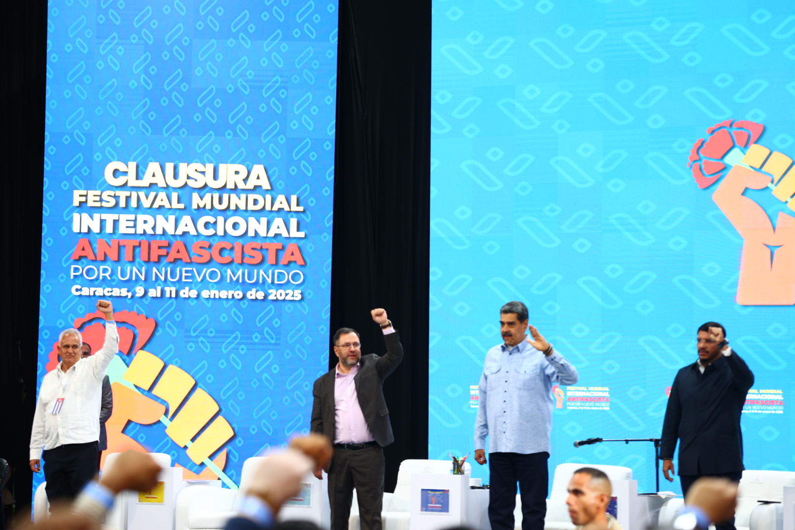 La Carlota, estado Miranda.– Una vez más, Venezuela se convierte en epicentro de la geopolítica en defensa de la soberanía y la autodeterminación de los pueblos, al clausurar este sábado el Festival Mundial de la Internacional Antifascista "Por Un Nuevo Mundo", desde el Centro de Convenciones del Parque “Simón Bolívar”, en la Base Aérea “Generalísimo Francisco de Miranda”, en La Carlota, estado Miranda.