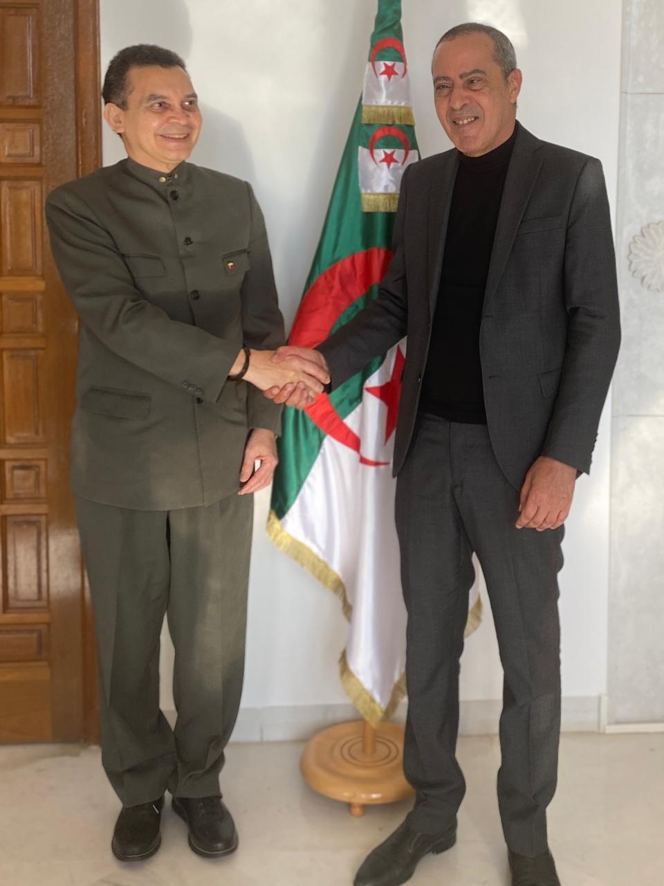 Los embajadores de Venezuela y Argelia en Túnez, Reinaldo Bolívar y Azzouz Baallal, respectivamente, sostuvieron una reunión de cortesía, en la sede de la Embajada argelina, en la cual abordaron temas referentes a la visión de ambos países sobre el devenir de las relaciones internacionales con África.