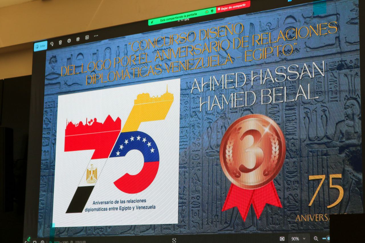 Este lunes se celebró, en el Salón Simón Bolívar de la Cancillería venezolana, en formato híbrido, el acto de premiación del concurso “Diseña un Logo”, con motivo del 75° aniversario del establecimiento de las relaciones diplomáticas entre Venezuela y Egipto.