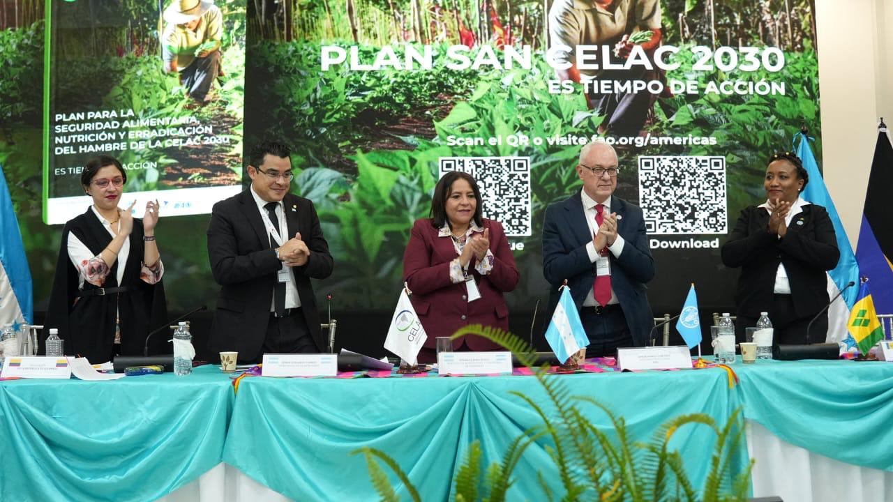 El valioso encuentro alcanzado gracias a la extraordinaria labor de la Presidencia Protempore de la CELAC-Honduras tuvo como objetivo principal promover estrategias conjuntas para garantizar la seguridad alimentaria, la nutrición y el desarrollo sostenible, impulsando el Plan para la Seguridad Alimentaria, Nutrición y Erradicación del Hambre (Plan SAN CELAC 2030).