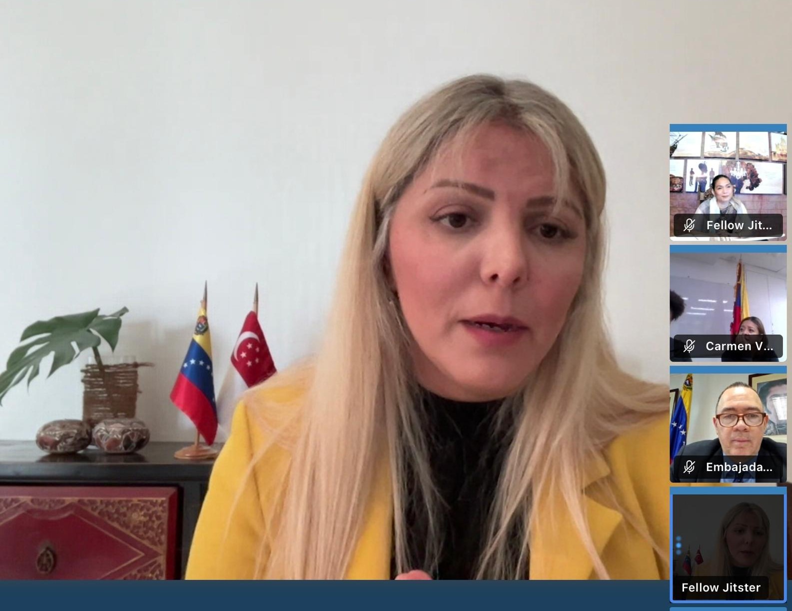 La embajadora de la República Bolivariana de Venezuela en la República de Singapur, Jessica María López, intervino en una videoconferencia que contó con la participación de la viceministra de Investigación y Generación del Conocimiento Científico del Ministerio del Poder Popular para Ciencia y Tecnología, Carmen Liendo; la presidenta del Centro Nacional para la Investigación del Cacao, Carmen Camejo; el Encargado de Negocios de la República Bolivariana de Venezuela en la República de Filipinas, Richard Espinoza; funcionarios del Despacho de la Viceministra para Asia, Medio Oriente y Oceanía del Ministerio del Poder Popular para Relaciones Exteriores, y representantes de la Cooperativa “Casa de Cacao”, de Cebú – Filipinas, registrada como “The Chocolate Chamber” en Singapur, con la finalidad de establecer condiciones para el desarrollo de alianzas para el estudio científico, intercambio de experiencia y promoción del cacao venezolano en la región del Sudeste Asiático.