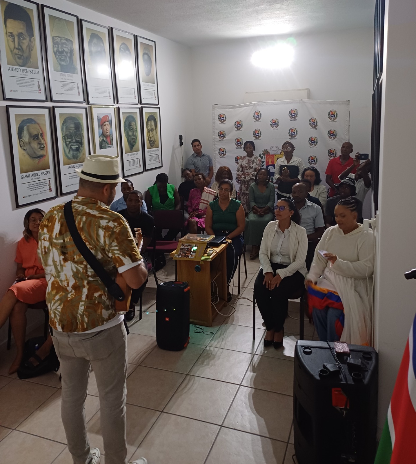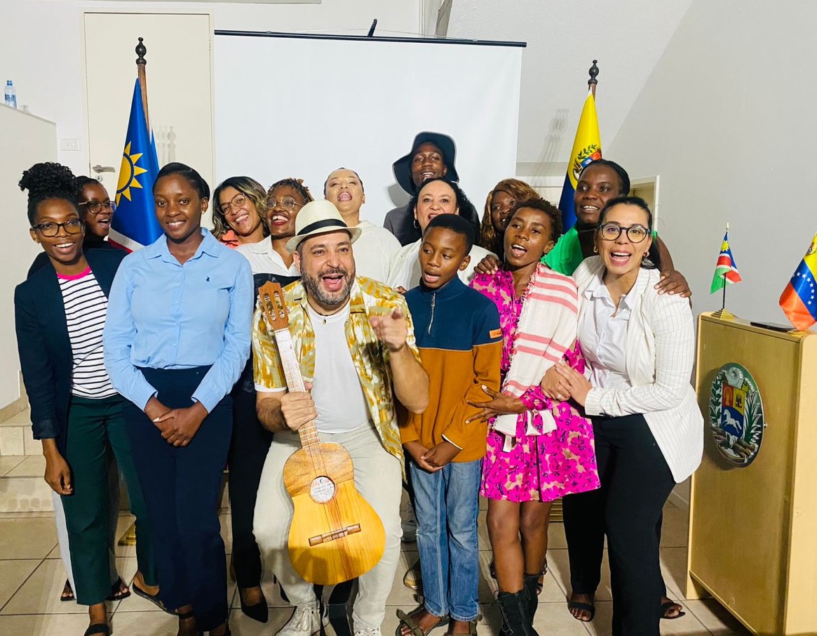 Al encuentro se dieron citas los estudiantes y funcionarios del Ministerio de Turismo de Namibia, quienes también disfrutaron de las melodías típicas venezolanas, interpretadas por el cantante Gerardo Valentín, músico, actor e integrante de la Gran Misión Viva Venezuela Mi Patria Querida, quien materializó durante el mes de febrero diversas actividades culturales programadas en Namibia, en aras de mostrar la cultura venezolana.