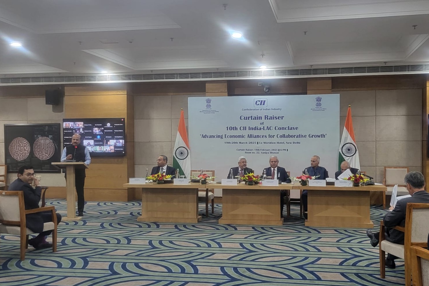 La Confederación de la Industria India (CII) convocó a la embajadora de la República Bolivariana de Venezuela, Capaya Rodríguez González, y al resto de jefes de las Misiones Diplomáticas de América Latina y el Caribe acreditadas ante el Gobierno de la República de la India, a la presentación del “10º Cónclave CII India – América Latina y el Caribe”, realizada en la sede del Ministerio de Comercio e Industria, coorganizador del evento.