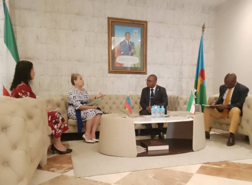 Acompañaron el encuentro, la consejera de la Embajada la República Bolivariana de Venezuela, Janite Fuentes Paredes; Crispín Edjang Nsulu, director de Relaciones Internacionales, y Leoncio Ekong, secretario técnico.