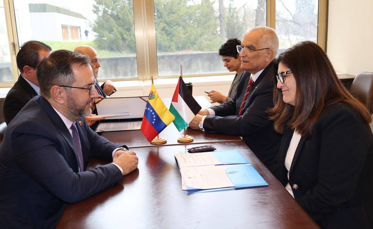 A propósito del 58° período de sesiones del Consejo de Derechos Humanos de la Organización de las Naciones Unidas, que se desarrolla en Ginebra, el ministro del Poder Popular para Relaciones Exteriores de la República Bolivariana de Venezuela, Yván Gil -en nombre del presidente Nicolás Maduro-, sostuvo este lunes una reunión con la ministra de Estado de Asuntos Exteriores y Expatriados del Estado de Palestina, Versan Aghabekian, con el fin de estrechar lazos de hermandad y solidaridad entre sus países.