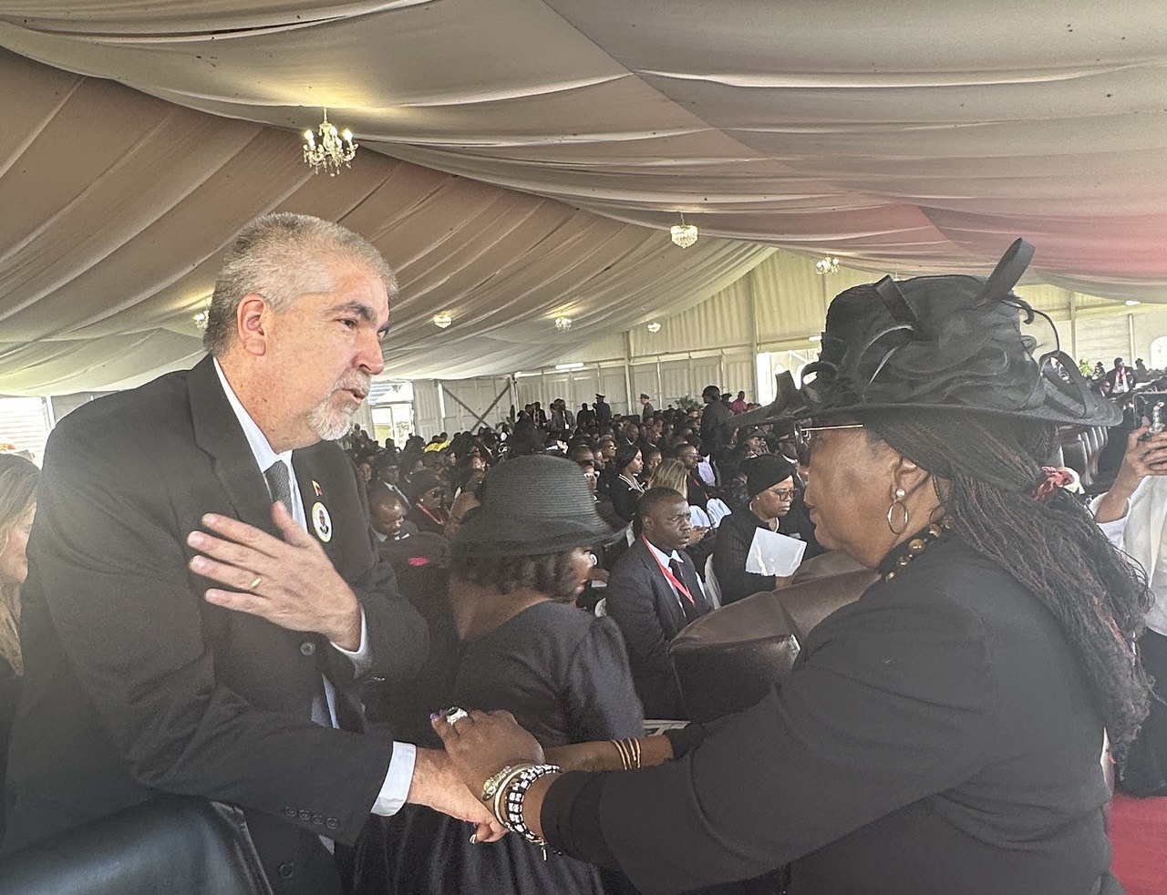 El viceministro Pimentel transmitió el mensaje de solidaridad del pueblo venezolano y del presidente Nicolás Maduro Moros, a Kovambo Nujoma, viuda del Padre Fundador; Utoni Nujoma, ministro del Trabajo, Relaciones Industriales y Creación de Empleo, y a Nangolo Mbumba, presidente de la República, así como a Netumbo Nandi-Ndaitwah, actual vicepresidenta y presidenta electa de Namibia, reafirmando los profundos lazos de hermandad.
