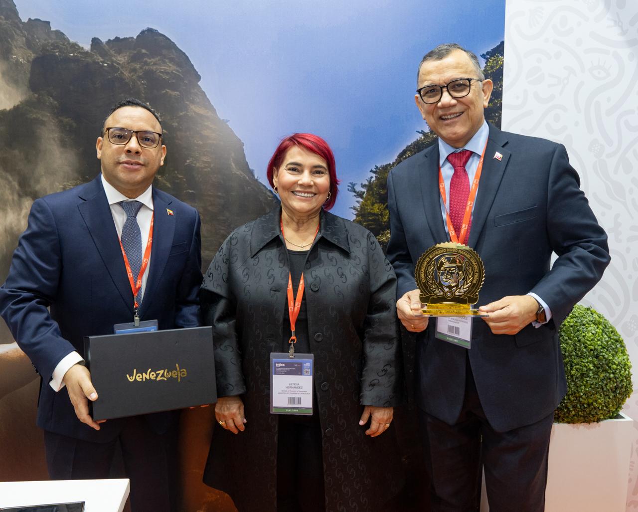 La delegación venezolana estuvo encabezada por la ministra del Poder Popular para el Turismo, Leticia Gómez, acompañada por el equipo de VENETUR Rusia y el embajador de Venezuela acreditado en Moscú, Jesús Rafael Salazar Velásquez, quien recibió un reconocimiento de parte de la Ministra por el trabajo que viene desempeñando la Embajada en el impulso del turismo desde el país euroasiático y en la apertura de la nueva oficina de VENETUR en la capital rusa.