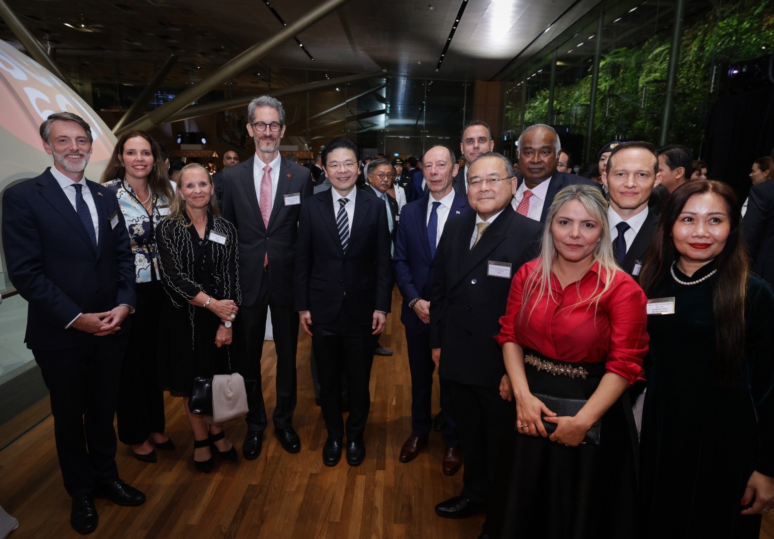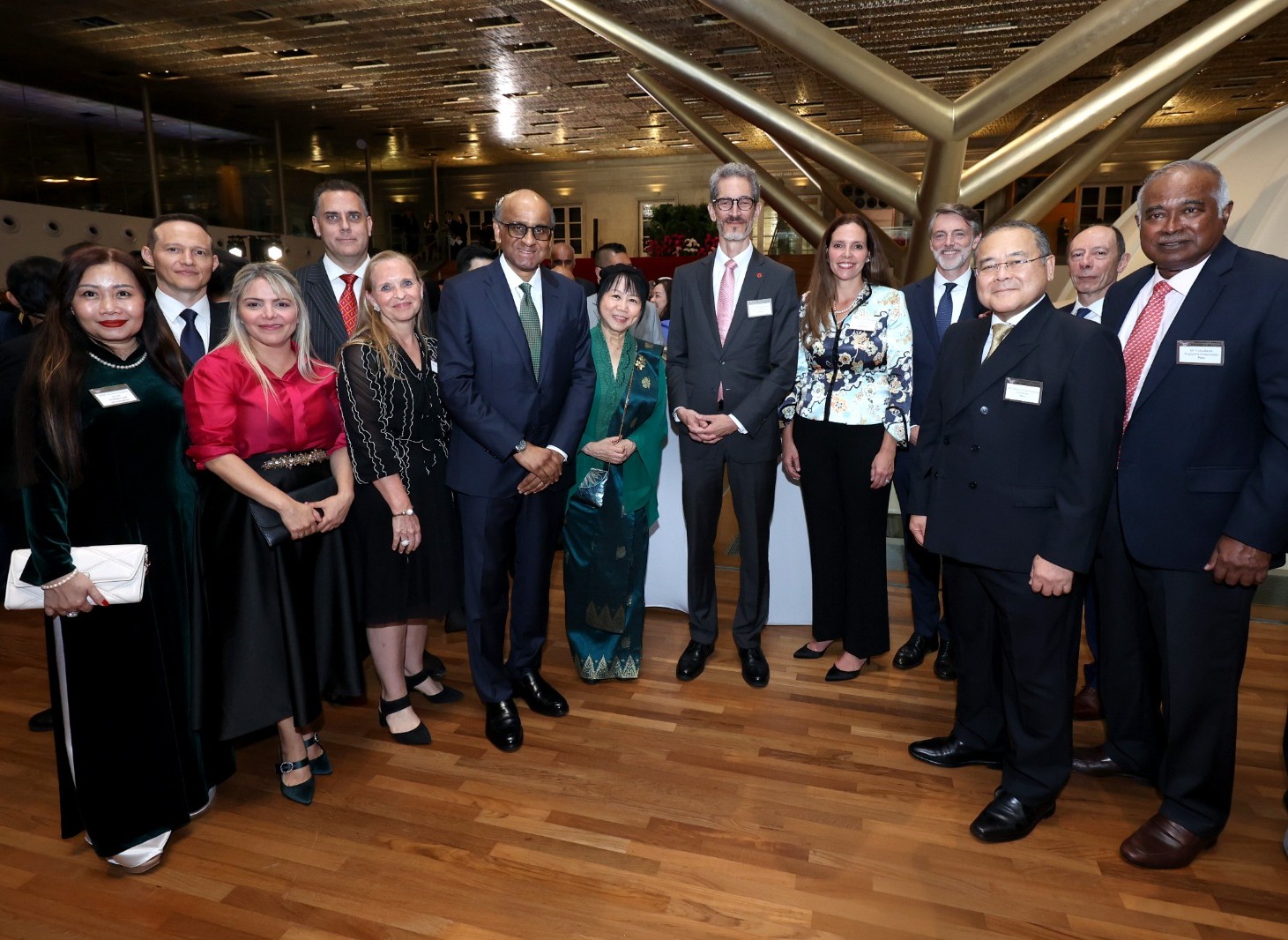 El evento, celebrado en las instalaciones de la Galería Nacional de Singapur, reunió a embajadores, altos representantes gubernamentales y autoridades locales, destacando la presencia, además del Presidente de la República, del Primer Ministro, Lawrence Wong; el ministro Senior, Lee Hsien Loong; el ministro de Relaciones Exteriores, Vivian Balakrishnan; y el ministro de la Oficina del Premier singapurense y segundo ministro para Relaciones Exteriores y Educación, Mohamad Maliki Bin Osman.