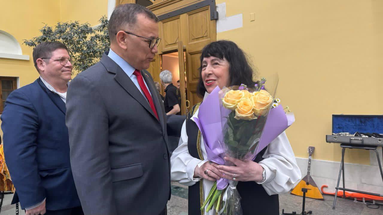 Al finalizar la velada, el embajador Salazar entregó un hermoso ramo de flores a la directora del conjunto, expresando su admiración y agradecimiento, y saludando a cada uno de los integrantes en una noche mágica, que quedará grabada en los corazones del público presente.