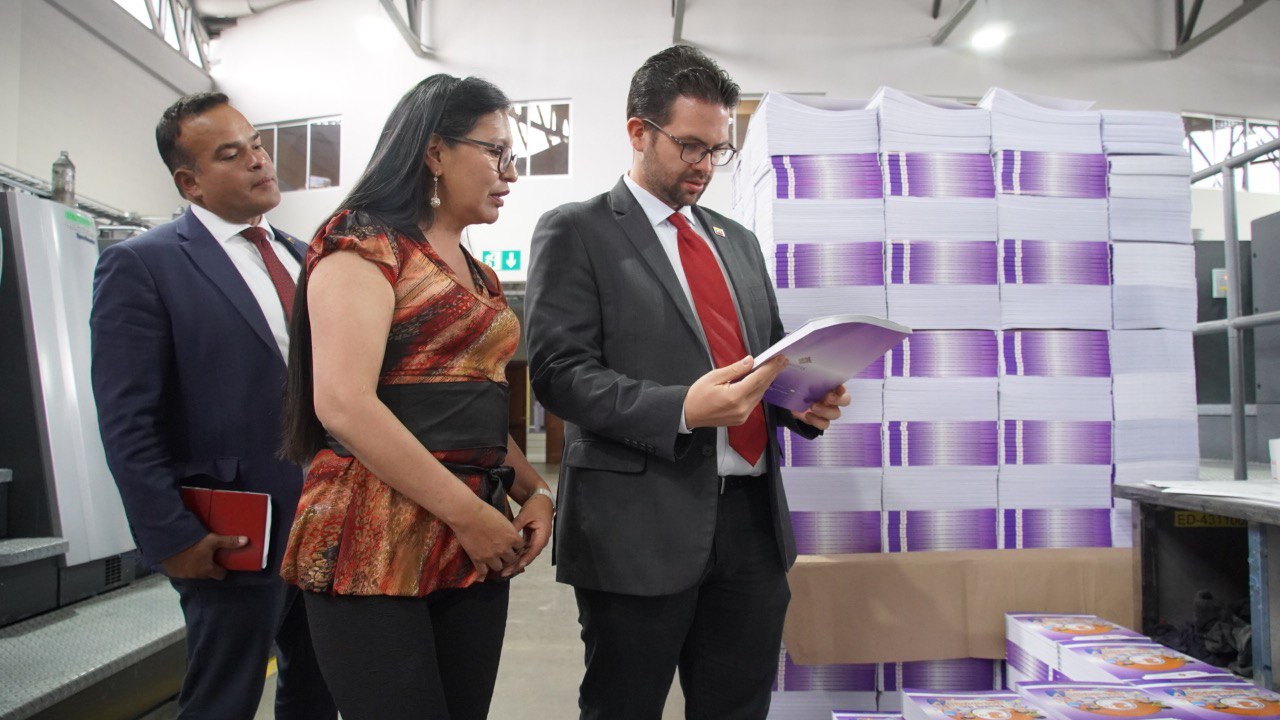 Como parte de la visita, Machicado ofreció un recorrido guiado por las modernas instalaciones de la Editorial del Estado Plurinacional de Bolivia, donde el Embajador conoció los procesos de edición e impresión que realiza la institución.