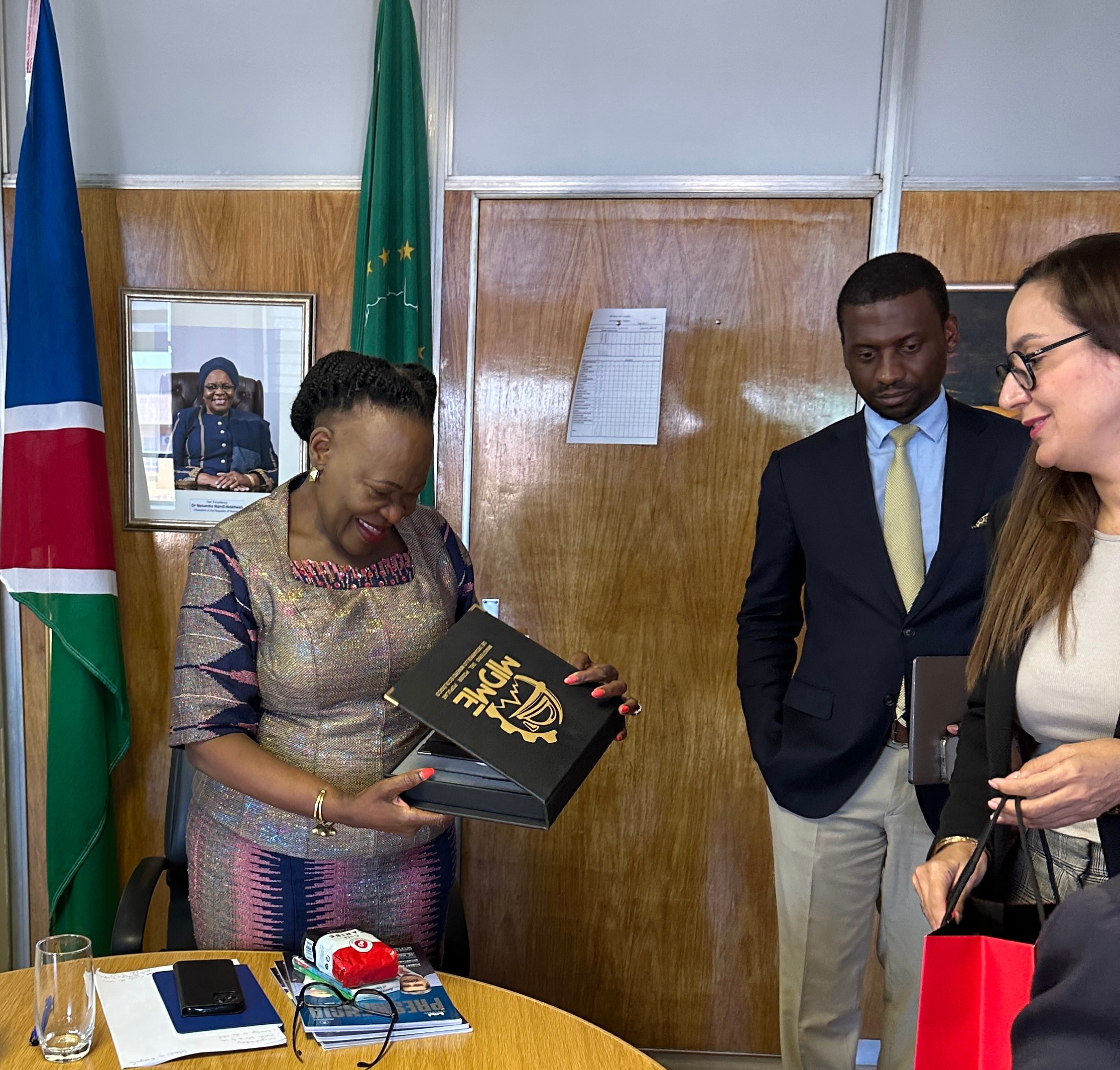 La Embajadora venezolana transmitió un cordial saludo y las felicitaciones del presidente Nicolás Maduro, por el triunfo histórico de una mujer, Netumbo Nandi-Ndaitwah, en la Presidencia de Namibia y por su elección como presidenta del partido SWAPO.