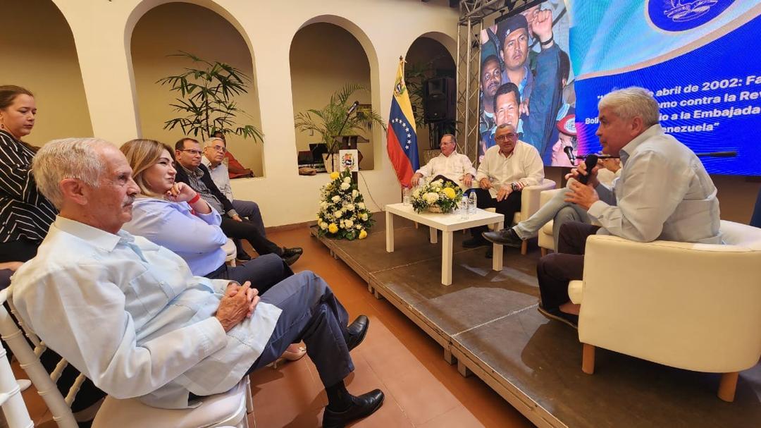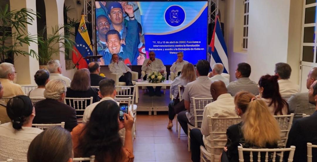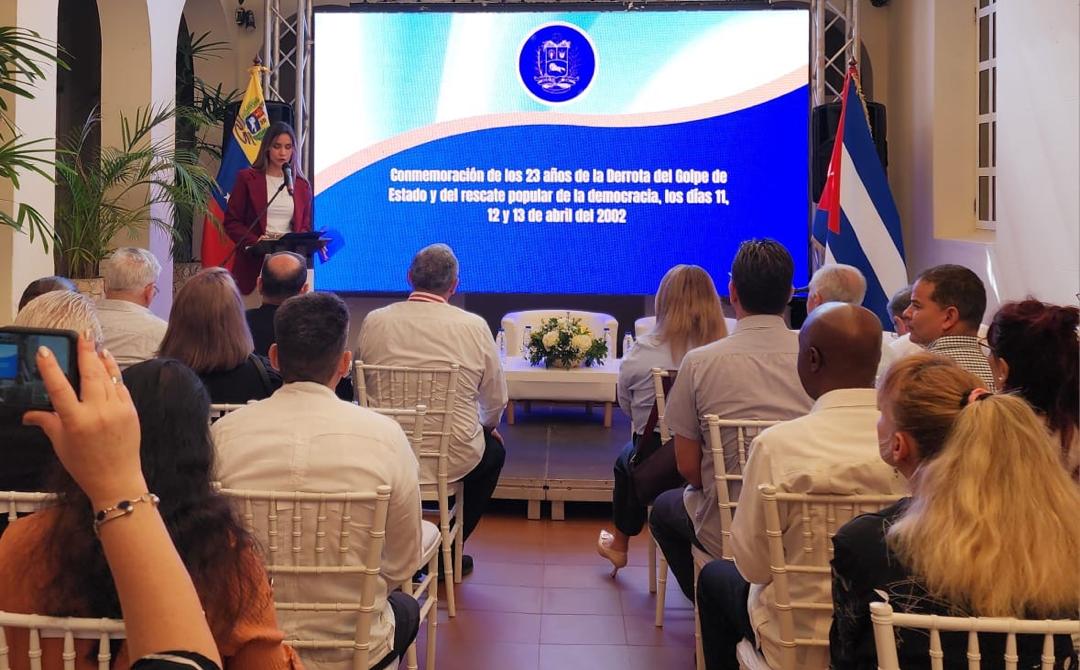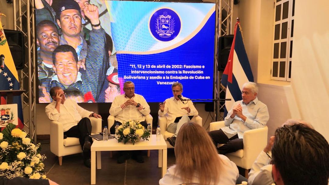 La Embajada de Venezuela en Cuba conmemoró de este viernes, 11 de abril, los 23 años de la derrota del golpe de Estado fascista contra el Comandante Eterno Hugo Chávez Frías, con el Conversatorio “11, 12 y 13 de abril de 2002: Fascismo e intervencionismo contra la Revolución Bolivariana y asedio a la Embajada de Cuba en Venezuela”.
