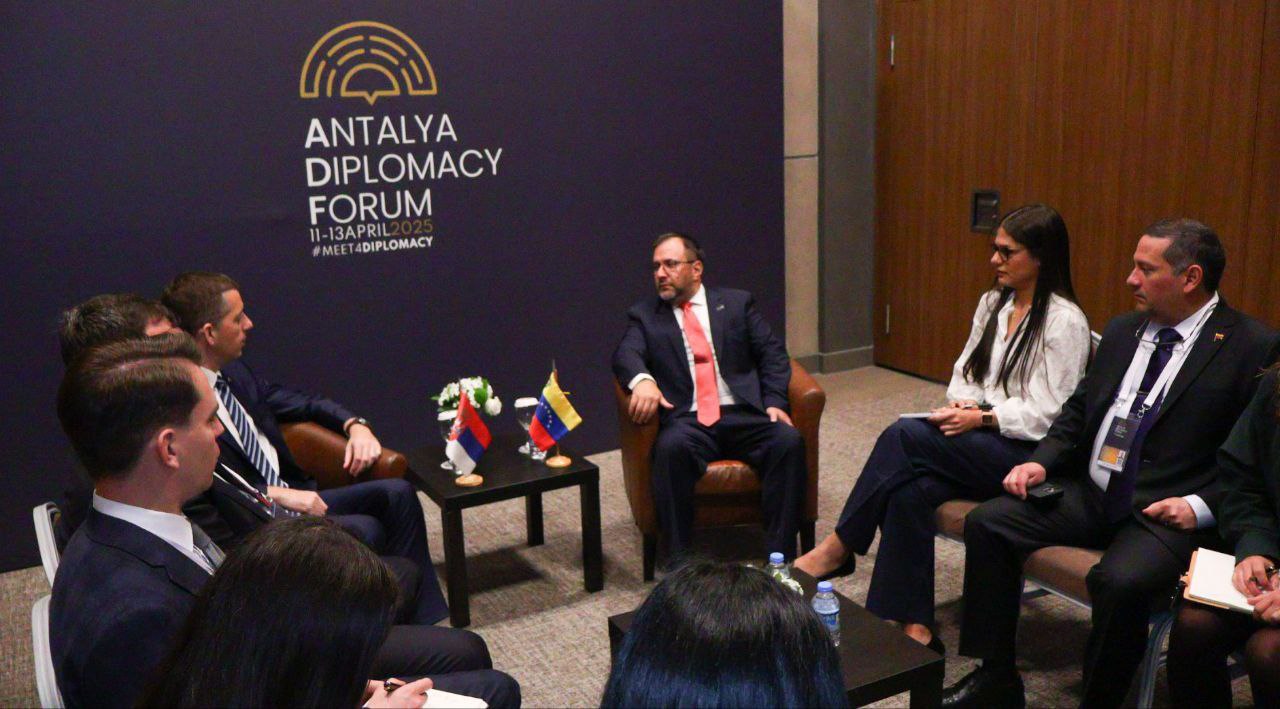 Los ministros de Relaciones Exteriores de la República Bolivariana de Venezuela y la República de Serbia, Yván Gil y Marko Đurić, respectivamente, sostuvieron una fructífera reunión este sábado en Antalya, donde ambos participan en la cuarta edición del reconocido Foro Diplomático que celebra anualmente esta ciudad de Türkiye.