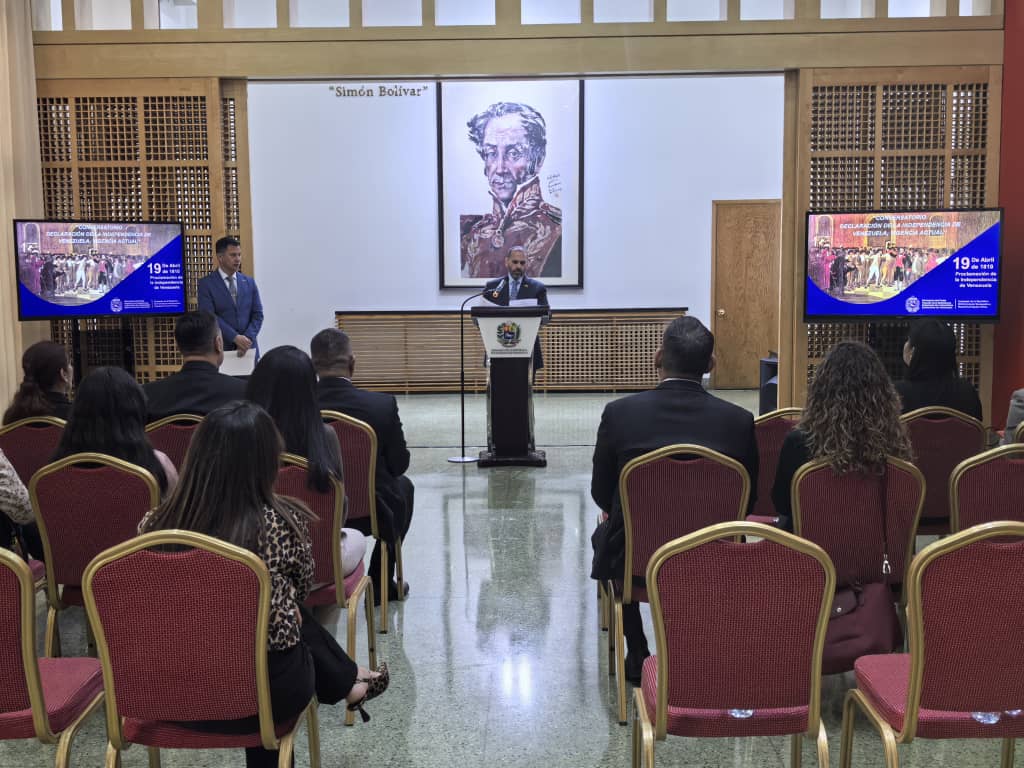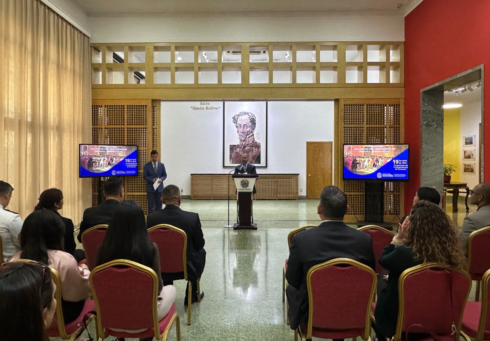 Ubicados en el Salón "Hugo Chávez", el embajador Ceballos Ichaso, en un breve saludo, contextualizó el conversatorio, señalando la importancia de esta fecha patriótica y destacando el carácter popular de esta revolución, y su repercusión en las fechas posteriores, como el 5 de julio de 1811.