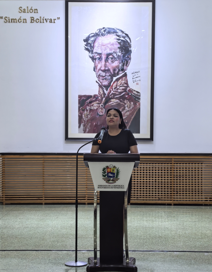 La primera oradora fue Oliger Mendoza Betancourt, estudiante del Doctorado en Ingeniería de la Información y Comunicación en la Universidad de Ciencia y Tecnología de Beijing (USTB), quien explicó que con el surgimiento de la Revolución Bolivariana se gesta una nueva corriente historiográfica denominada «Historia Insurgente»”, la cual ha permitido concebir una visión más clara y certera, pero sobre todo, más alejada de la concepción urdida y confabulada por el mundo occidental. "Y da justo valor a esta fecha patriótica como un 'desencadenante histórico' que aún en nuestros días alimenta la lucha política revolucionaria anticolonialista y antiimperialista", agregó.