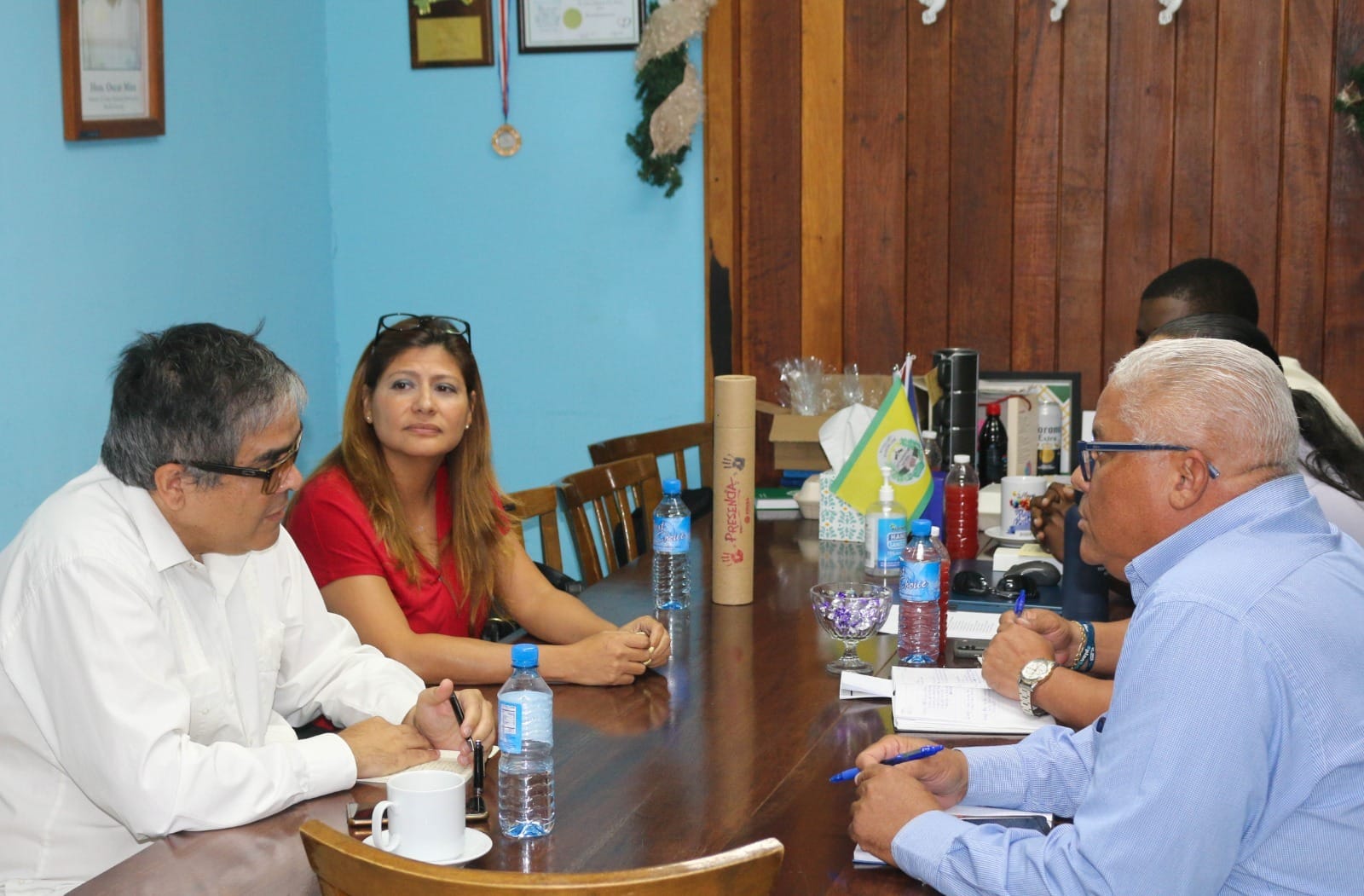 En el marco del fortalecimiento de las relaciones bilaterales, el embajador de la República Bolivariana de Venezuela en Belice, Gerardo Argote, sostuvo una reunión de trabajo con el alcalde de Belmopán, Pablo Cawich, acompañado por el manager de la Alcaldía, John Wade, y el concejal Chris Enriquez.