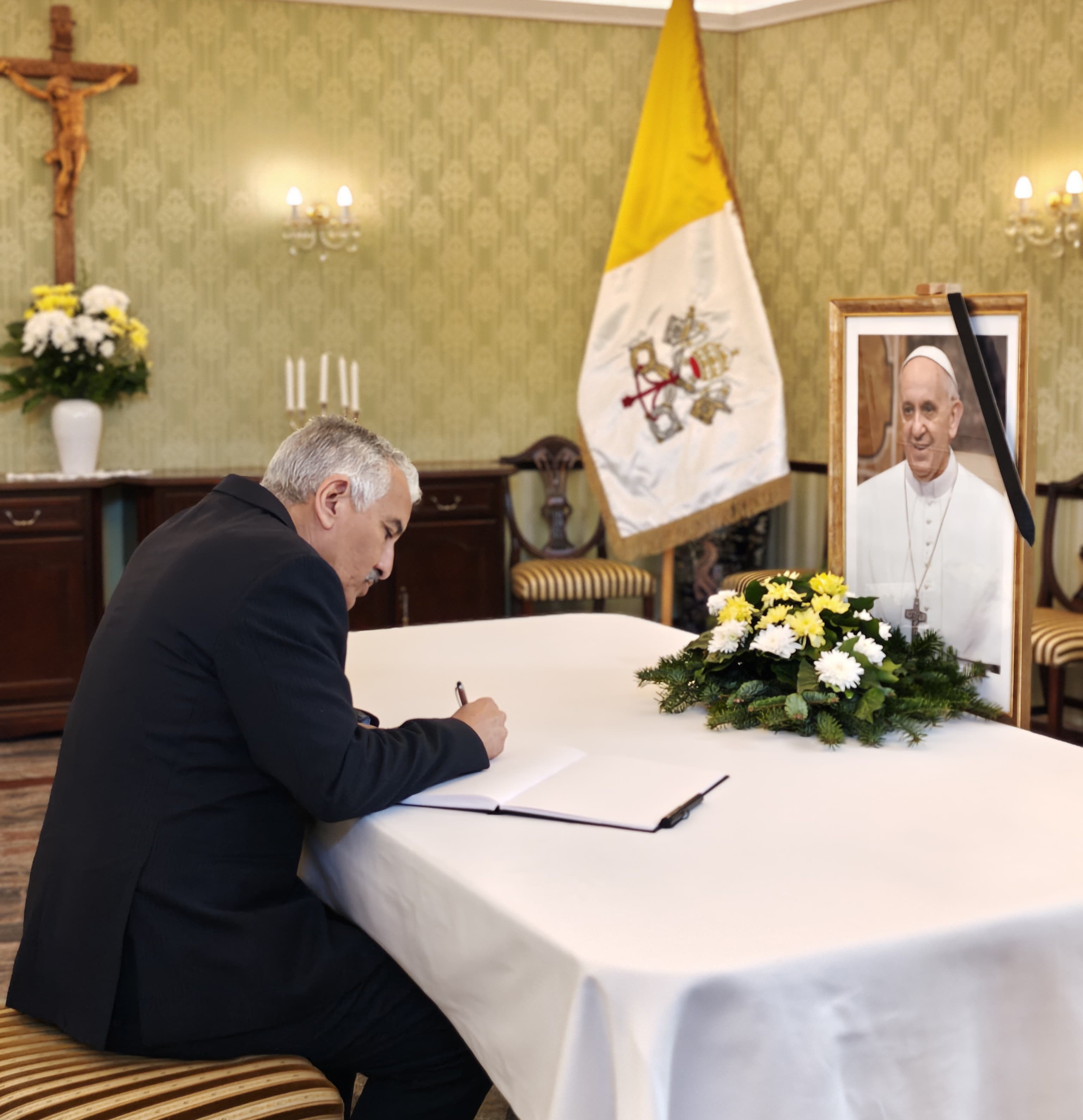 El Embajador expresó además al Nuncio Apostólico el gran impacto que tuvo el Papa Francisco en los pueblos del mundo, así como su humanidad y su valentía personal.