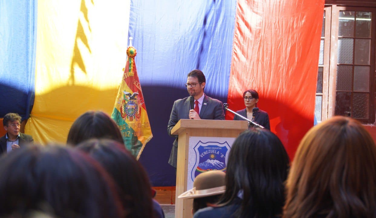 Embajador Trómpiz visita Unidad Educativa Venezuela y fortalece lazos culturales y educativos Fotógrafo: Embajada de Venezuela en Bolivia
