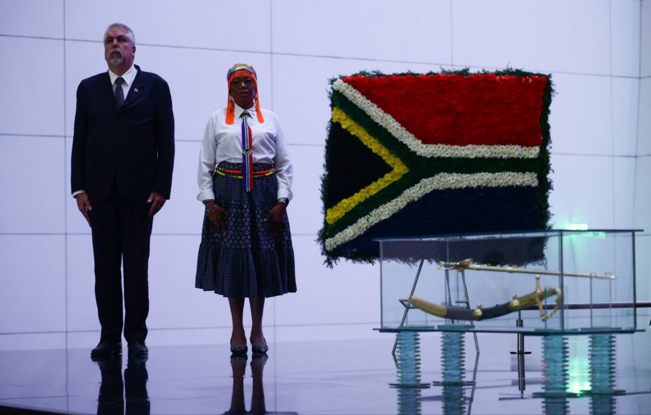 En representación del Gobierno de la República Bolivariana de Venezuela, el viceministro para África del Ministerio del Poder Popular para Relaciones Exteriores, Yuri Pimentel, acompañó este lunes a la embajadora Lindiwe Michelle Maseko, en la ceremonia de ofrenda floral ante el sarcófago del Libertador Simón Bolívar con motivo de la conmemoración del Día Nacional de la Libertad de Sudáfrica.