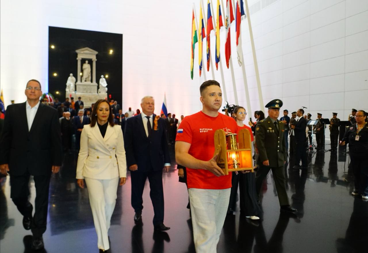 Con motivo del encendido de la réplica de la Llama Eterna de la Tumba del Soldado Desconocido del Kremlin, la Embajada de Rusia en Venezuela rindió honores este miércoles al Libertador Simón Bolívar, con una ofrenda floral ante el sarcófago que guarda sus restos mortales en el Panteón Nacional, en Caracas.