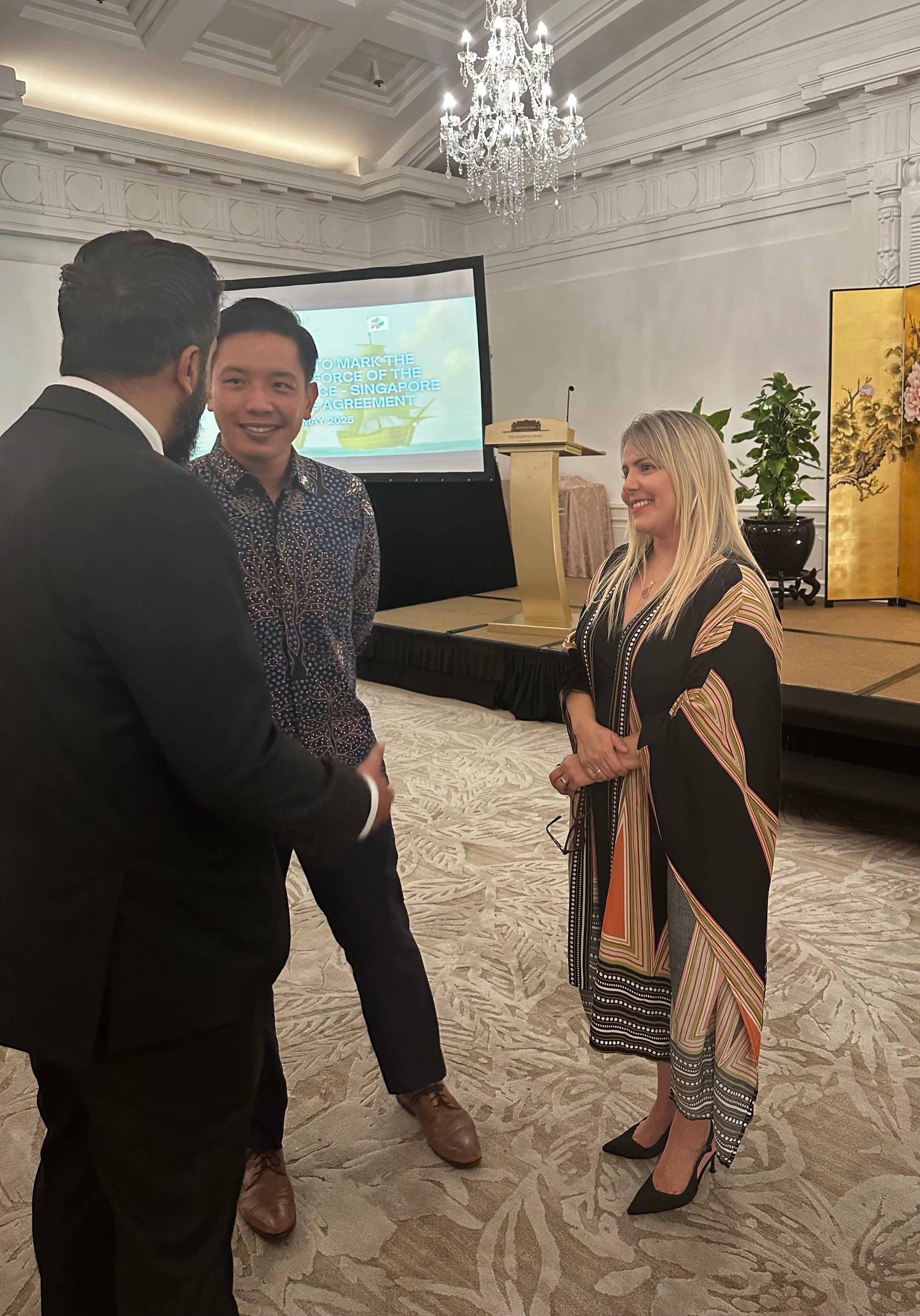En atención a una invitación del Ministerio de Comercio e Industria de la República de Singapur, la embajadora de la República Bolivariana de Venezuela, Jessica María López Piña, participó en la recepción oficial con motivo de la entrada en vigor del Tratado de Libre Comercio (TLC) entre la Alianza del Pacífico y Singapur.