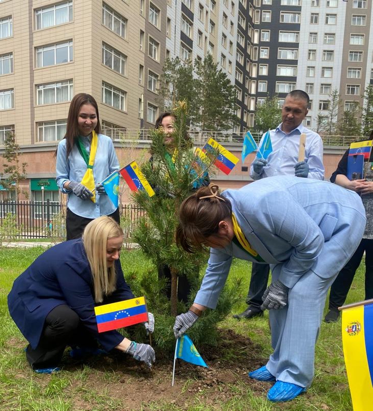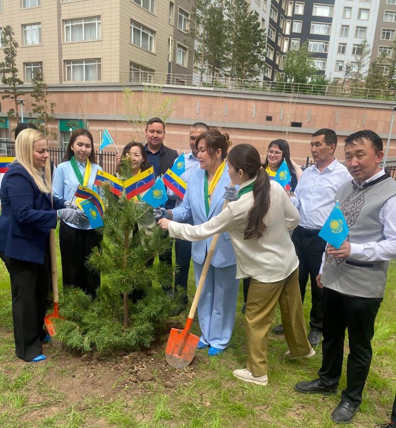 La embajadora Rosalba Lo Bue Antico informó que este jueves, 8 de mayo, en el marco de la conmemoración del 29° aniversario del establecimiento de relaciones diplomáticas entre Venezuela y Kazajistán, se realizó la siembra de un árbol en la "Escuela secundaria pública municipal N° 102" del Akimat (alcaldía) de la ciudad de Astaná.
