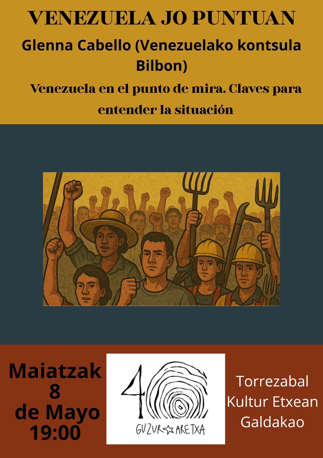 El centro cultural Torrezabal Kultur Etxean Galdakao abrió sus puertas a la diplomática para que ofreciera la charla "Venezuela jo puntuan / Venezuela en el punto de mira: claves para entender la situación actual".