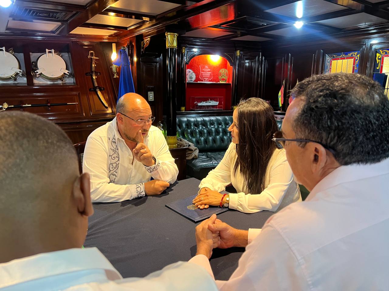 La Jefa de Misión recibió al representante del gobernador en el Buque Escuela “Simón Bolívar”, donde ambos funcionarios conversaron sobre temas de interés común.