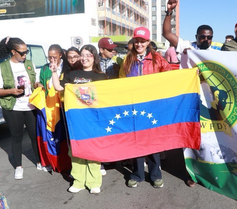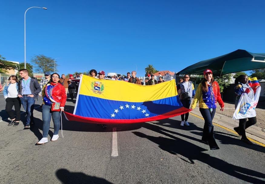 En la ciudad de Windhoek, Namibia, la Federación Mundial de la Juventud Democrática (WFDY) organizó una gran marcha antiimperialista, expresando su solidaridad con los pueblos de Venezuela, Cuba, Palestina y el Sáhara Occidental.