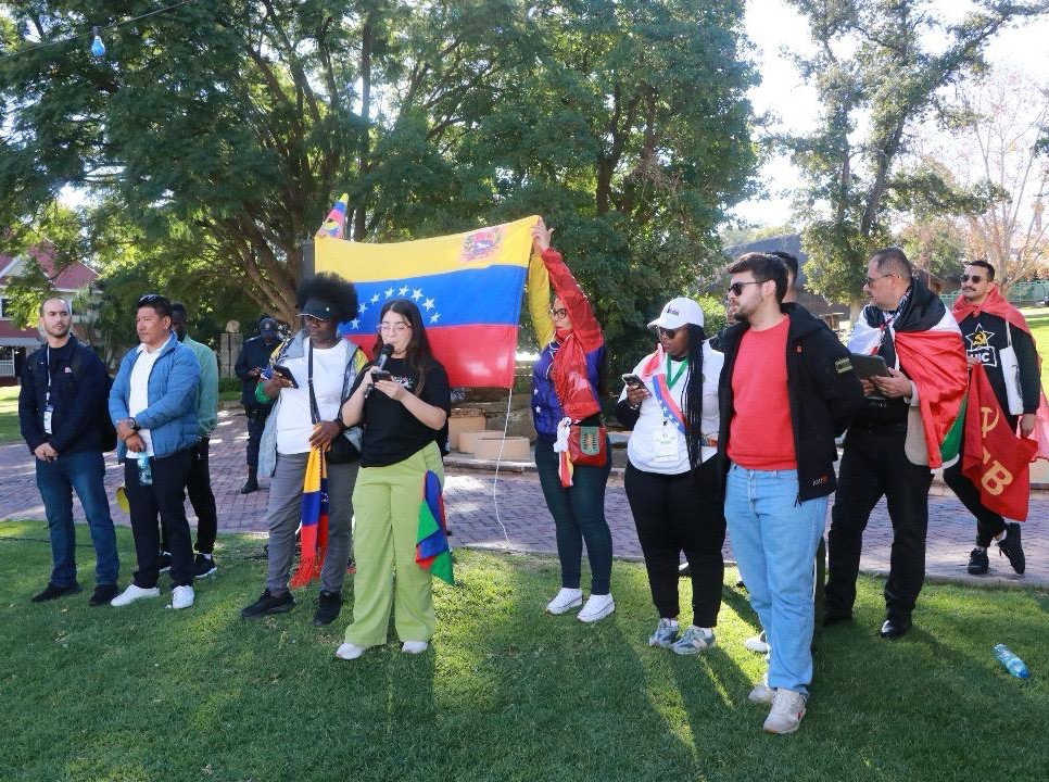 Cientos de jóvenes provenientes de todo el mundo se reunieron en una jornada llena de energía, alegría y compromiso revolucionario, exigiendo el levantamiento inmediato de las sanciones y el bloqueo económico que afecta a Venezuela y Cuba, así como la liberación del territorio y la autodeterminación de los pueblos palestino y saharaui.