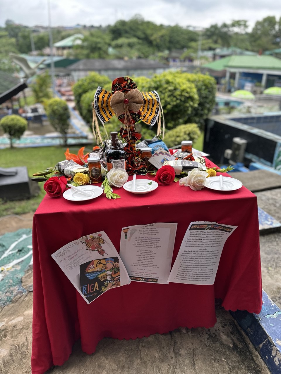 La Embajadora explicó las festividades frente a un altar dedicado a la Santísima Cruz de Mayo, la cual fue vestida con telas africanas y decorada con café, chocolate, miel y ron venezolanos, así como flores, representando de esta manera el concepto de la festividad y la unión con los pueblos de África.