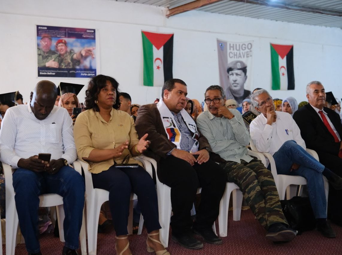 El acto académico estuvo presidido por el ministro de Educación, Enseñanza y Formación Profesional, Jatri Aduh, quien destacó que la Escuela “Simón Bolívar” es la primera fundada en el continente africano con el nombre del Libertador venezolano, motivo de orgullo para la nación saharaui.