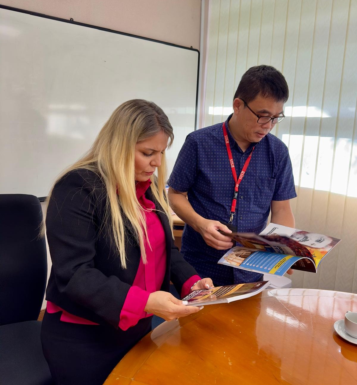 La embajadora de la República Bolivariana de Venezuela en la República de Singapur, Jessica María López Piña, sostuvo una importante reunión con Adrian Tan, subdirector del Instituto de Estudios de Defensa y Estratégicos (IDSS) y jefe del Centro de Investigación de Políticas de la Escuela de Estudios Internacionales "S. Rajaratnam" (RSIS), adscrita a la Universidad Tecnológica de Nanyang (NTU).