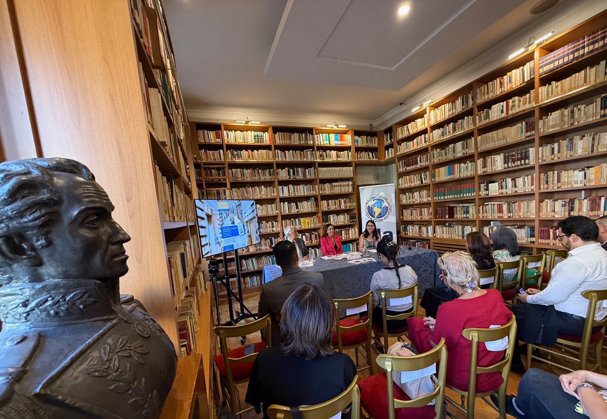 La Encargada de Negocios agradeció a la IILA por ceder un espacio tan importante, como su histórica biblioteca, y destacó que el libro es fruto de un valioso proyecto de investigación para Venezuela y para todos los países latinoamericanos que independizó Bolívar.