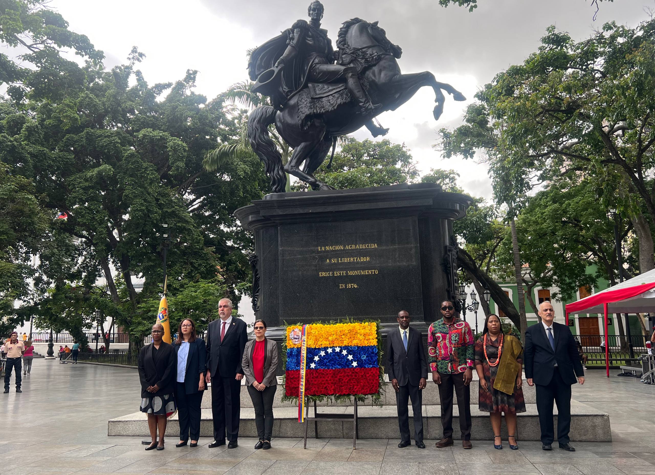 La actividad contó con la presencia del cuerpo diplomático acreditado en Venezuela, funcionarios de la Cancillería y representantes del ISB, quienes rindieron honores y colocaron una ofrenda floral ante la estatua del Libertador Simón Bolívar, en la plaza principal que lleva su nombre en Caracas.
