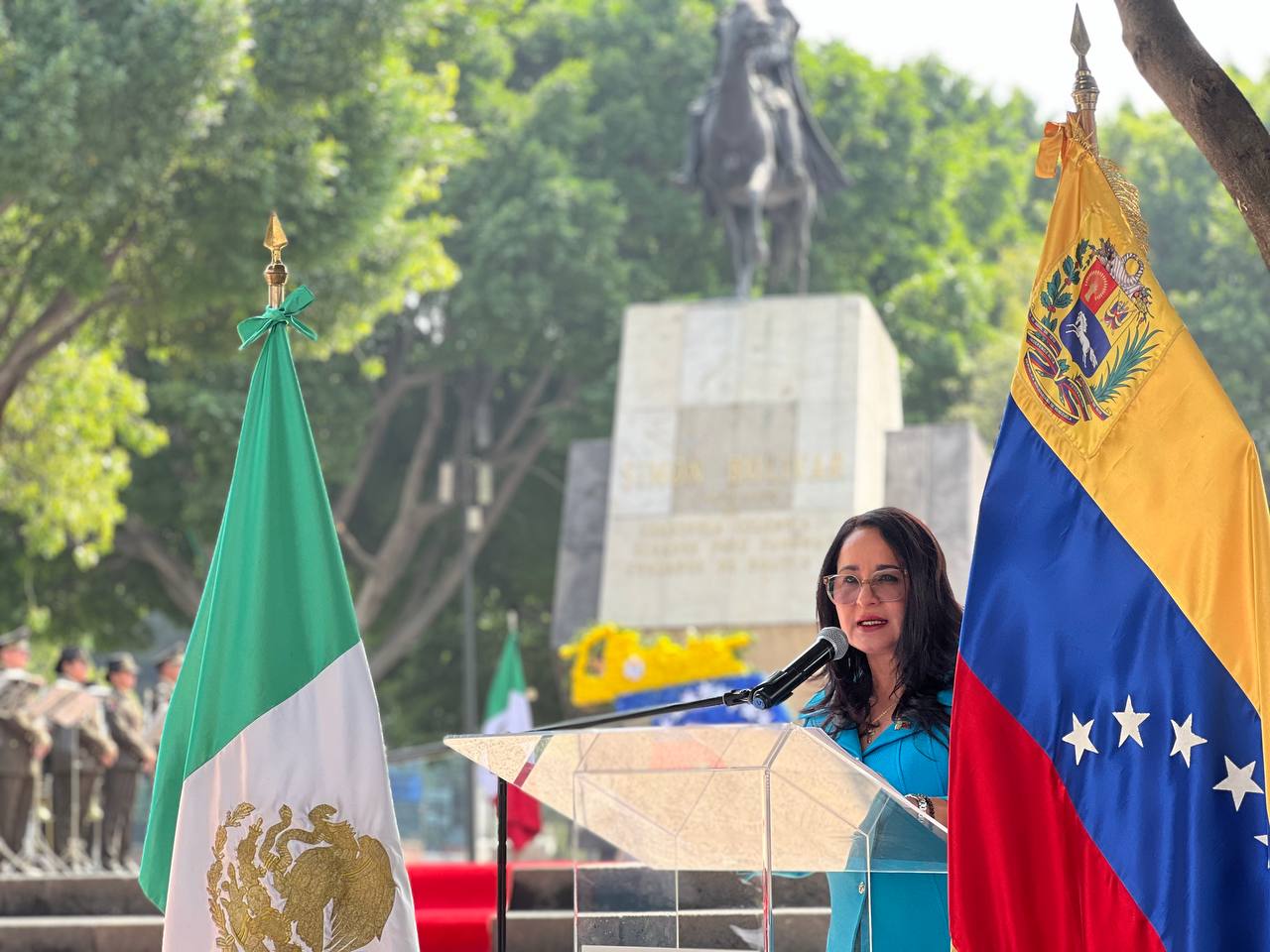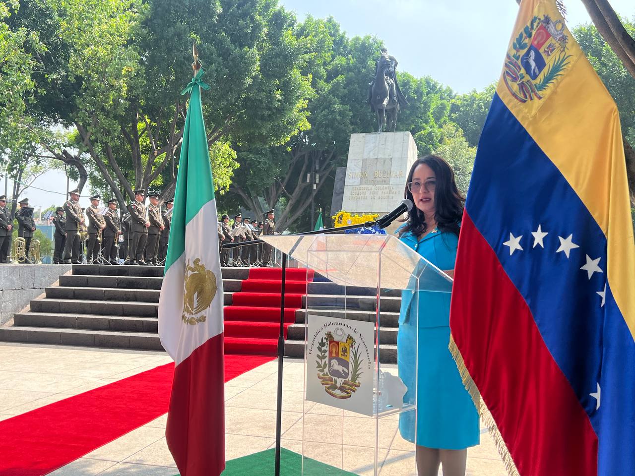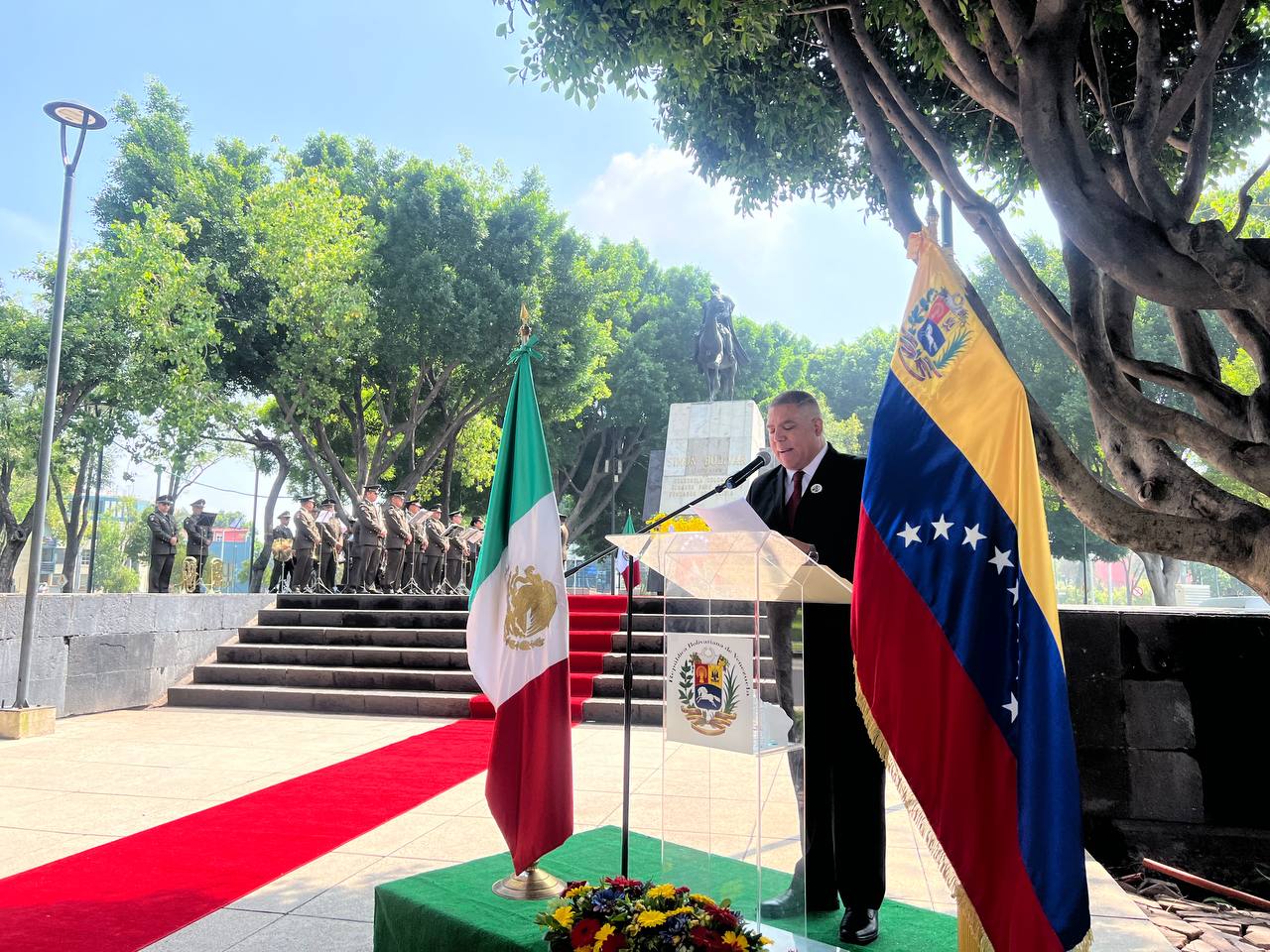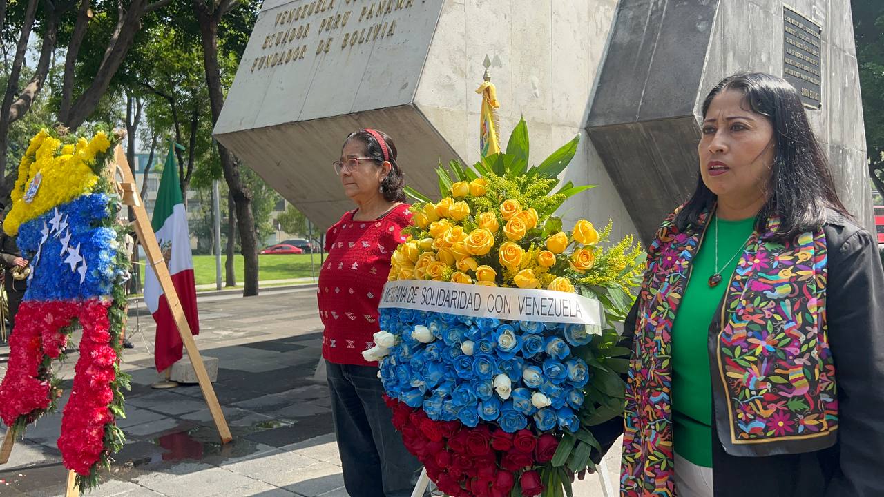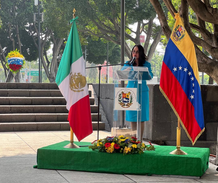 Desde el monumento al Libertador Simón Bolívar, en la Ciudad de México, con ofrenda floral, la Jefa de Misión y los presentes rememoraron la gesta que sentó las bases fundacionales de la República Bolivariana el 5 de julio de 1811.