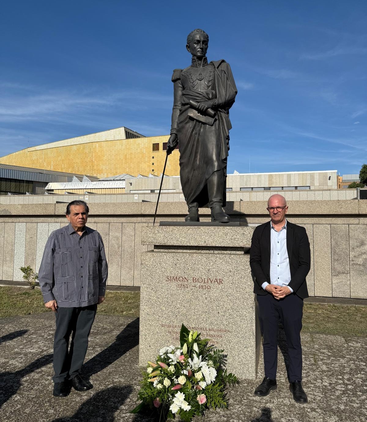 Berlín, 5 de julio de 2025.- La Embajada de la República Bolivariana de Venezuela en Alemania conmemoró el 214 aniversario de la Declaración de Independencia de su país, con un acto solemne en el Instituto Iberoamericano de Berlín, frente al busto del Libertador Simón Bolívar.