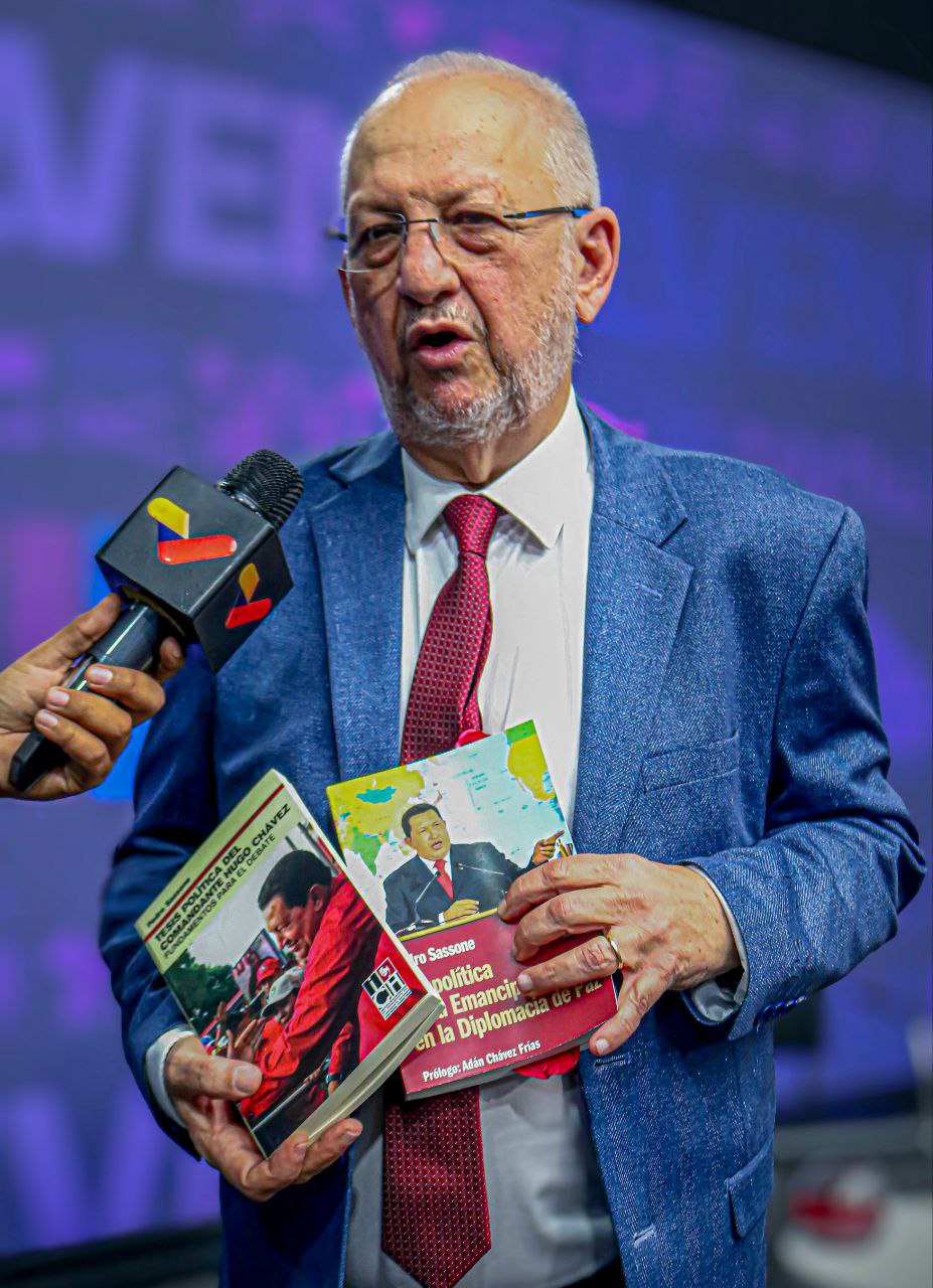 Sassone finalizó destacando que en la obra literaria habla del Comandante Eterno y “una visión del sistema mundo y la construcción de la Venezuela de transformación y bolivariana”. En ese sentido, afirmó que “es un aporte fundamental en la geopolítica y la emancipación, ya que es una nueva manera de conceptualizar; en Chávez nos encontramos una manera de reaccionar y analizar el espacio y la definición de la política y el poder”.