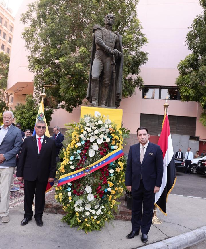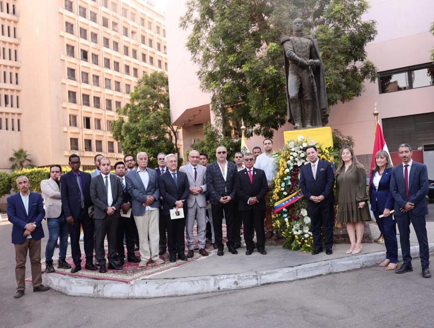 El Cairo, 8 de julio de 2025.- Con orgullo bolivariano y júbilo patriótico, la Embajada de Venezuela en Egipto realizó una ceremonia de ofrenda floral para rendir un sentido homenaje al Padre de la Patria, Simón Bolívar, en el monumento erigido en su honor en el corazón de El Cairo, y conmemorar el 214 aniversario de la Independencia y Día de la Fuerza Armada Nacional Bolivariana.