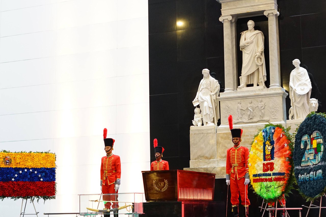 Como parte de los actos protocolares organizados para celebrar el 242 aniversario del natalicio del Libertador Simón Bolívar, el ministro del Poder Popular para Relaciones Exteriores, Yván Gil Pinto, presentó una ofrenda floral ante el sarcófago que guarda los restos mortales del padre de la Patria.