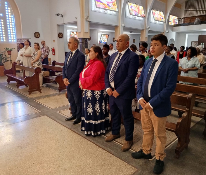 Al concluir la misa, Dana Casanova, encargada de Negocios de Venezuela, pronunció unas breves palabras y seguidamente, se ofreció una pequeña degustación de sabores venezolanos en el espacio de usos múltiples de la iglesia, donde se compartieron empanadas, jugo natural y papelón con limón, fortaleciendo los lazos de amistad y fraternidad con la comunidad religiosa y diplomática presente.