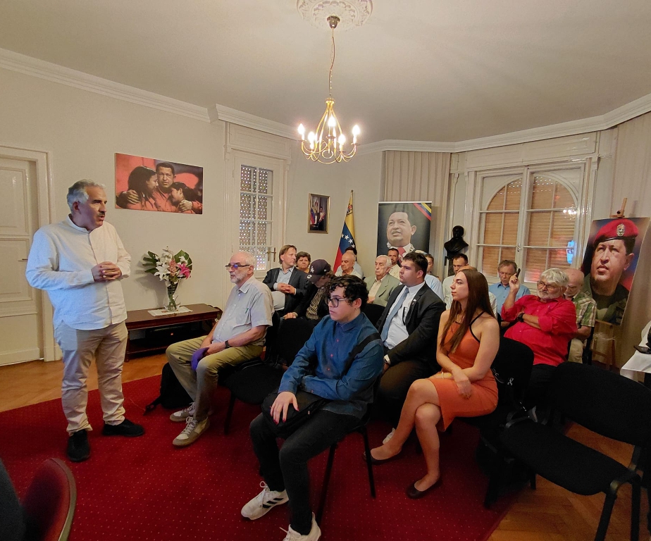 Budapest, 28 de julio de 2025.- La Embajada de la República Bolivariana de Venezuela en Hungría realizó un acto de solidaridad con ocasión del 71 aniversario del natalicio del Comandante Hugo Chávez; el primer aniversario del Triunfo Electoral del Presidente Nicolás Maduro y un análisis coyuntural con relación a las elecciones municipales del 27 de julio y cierre del ciclo electoral venezolano.