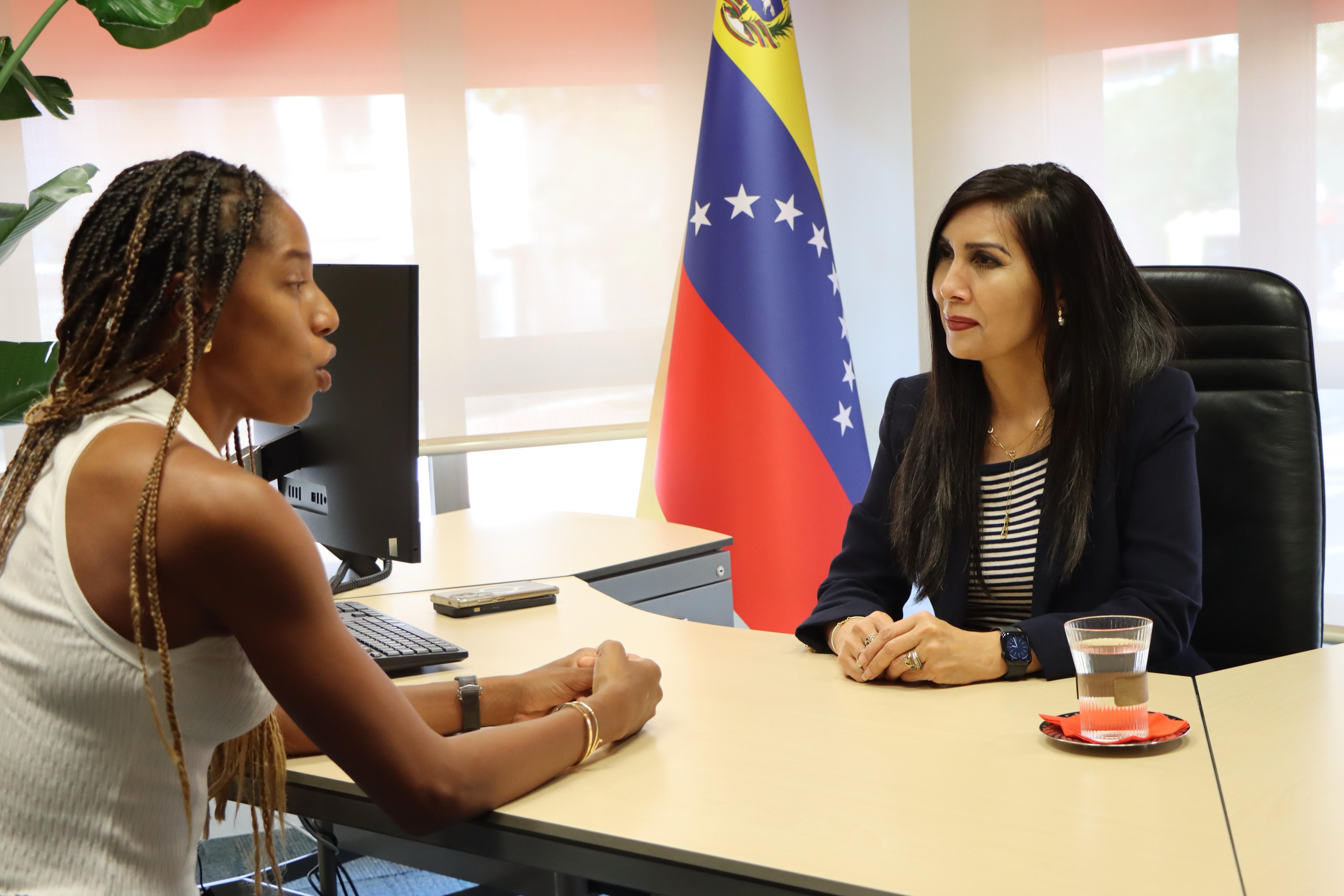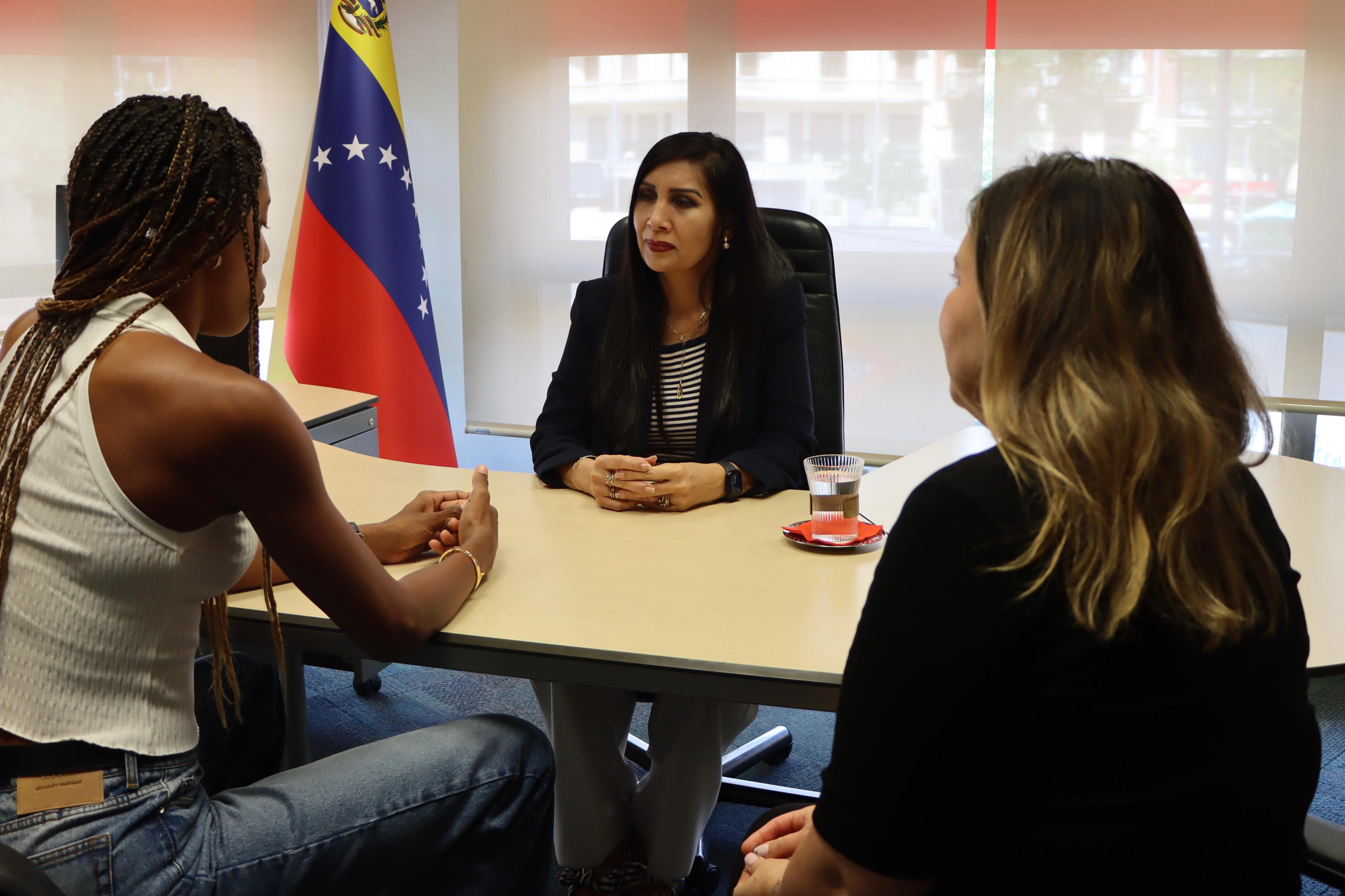La campeona olímpica venezolana, poseedora del récord mundial y también campeona del mundo, lo cuenta -visiblemente emocionada- en la sede del Consulado General de la República Bolivariana de Venezuela en Madrid, durante un ameno encuentro sostenido este viernes con la embajadora Gladys Gutiérrez Alvarado y la cónsul general Nancy Lira Ochoa.