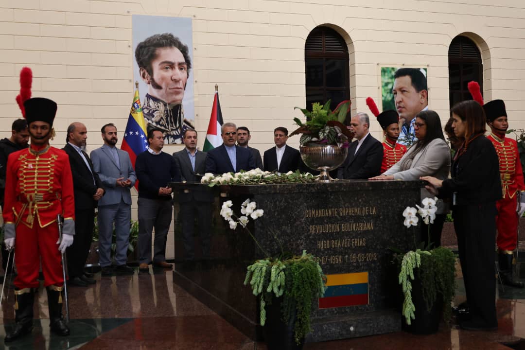 En el marco del 75 Aniversario del Establecimiento de las Relaciones Diplomáticas entre la República Bolivariana de Venezuela y la República Islámica de Irán, el embajador de Irán acreditado en Caracas, Alí Chegeni, acompañado de la viceministra para Asia, Medio Oriente y Oceanía del Ministerio del Poder Popular para Relaciones Exteriores, Tatiana Pugh, realizó este miércoles una ofrenda floral ante el mausoleo donde reposan los restos mortales del Comandante Hugo Chávez, en el Cuartel de la Montaña 4F, ubicado en la parroquia 23 de Enero de la capital venezolana.