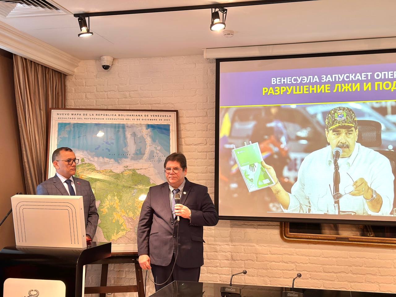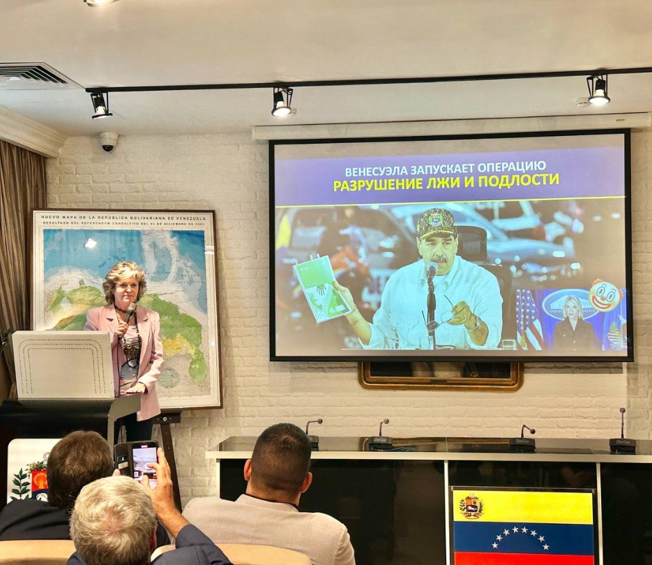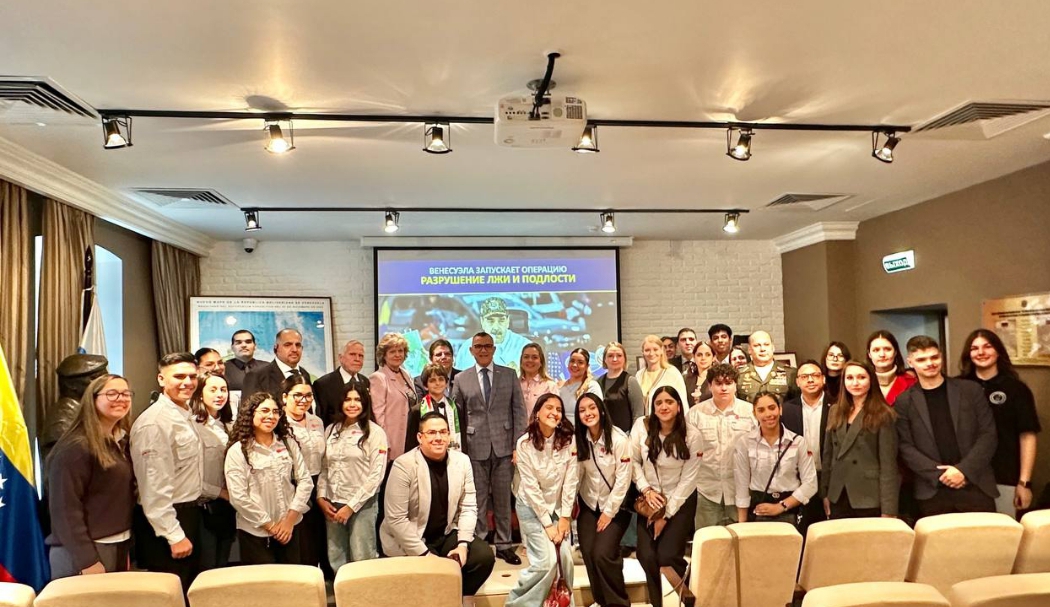 Moscú, 22 de agosto de 2025.- En un acto de firme solidaridad y denuncia, este viernes se desarrolló, en el Salón "Simón Bolívar" de la Embajada de Venezuela en Rusia, el conversatorio titulado “Amenazas y Ofensivas del Imperialismo en América Latina - Caso Venezuela. Desmontando la Infamia”.