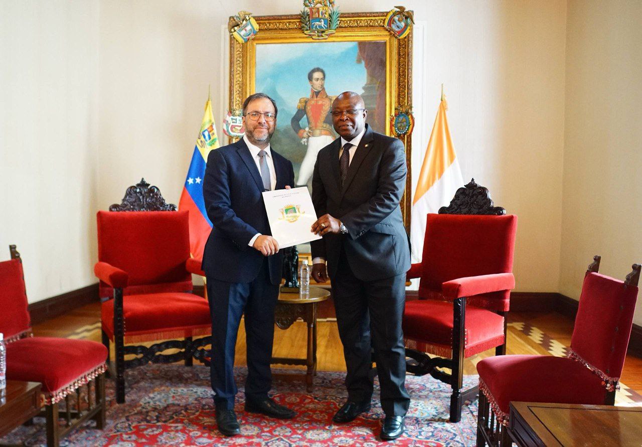 Seguidamente, el nuevo embajador de la República de Côte d'Ivoire, Damoutene Alassane Zié, consignó sus Copias de Estilo ante el titular del despacho de Relaciones Exteriores de Venezuela, quien consideró que “su llegada representa una valiosa oportunidad para fortalecer la unión entre nuestros pueblos caribeños y africanos; además, compartimos un amplio potencial en áreas como la agricultura y otros temas multilaterales, lo que nos permitirá construir juntos un futuro próspero y colaborativo”.