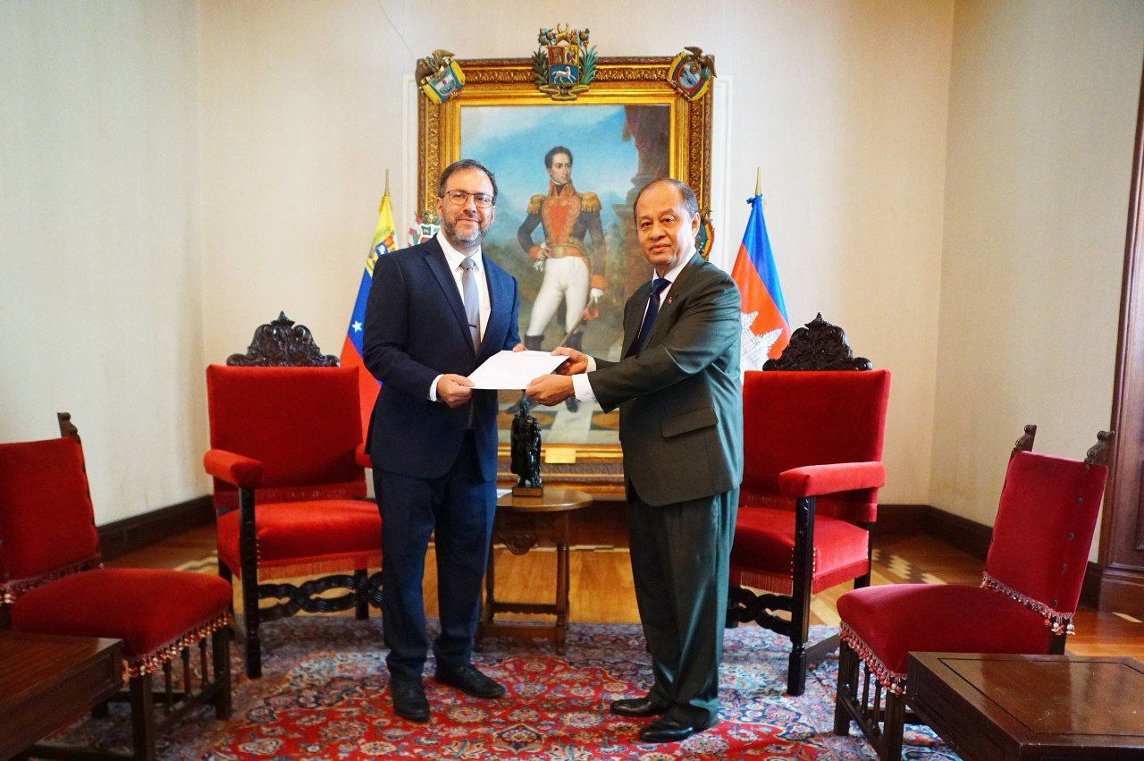 “En nombre del Presidente Nicolás Maduro, hemos recibido las Copias de Estilo del nuevo embajador del Reino de Camboya, Chea Thireak”, señaló el Canciller en un mensaje publicado en su canal de Telegram, en el que añadió que “este recibimiento marca el inicio de un nuevo capítulo en nuestras relaciones bilaterales, orientado hacia la prosperidad y el fortalecimiento del intercambio y la hermandad entre nuestros pueblos”.