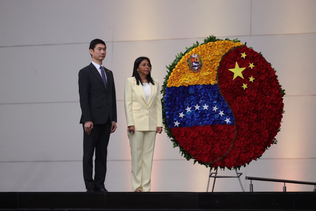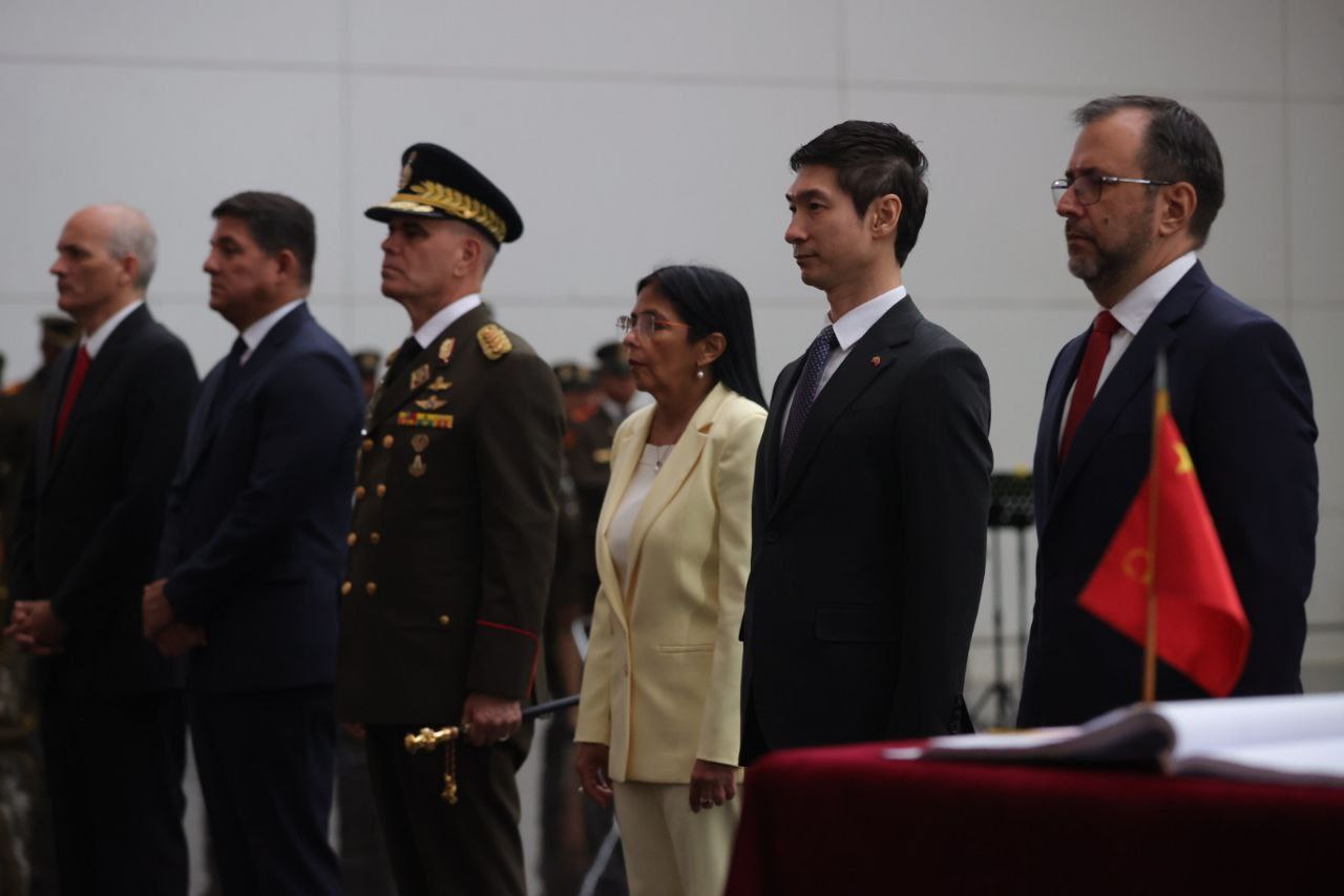 En conmemoración del 80.º aniversario de la Victoria en la Guerra de Resistencia del Pueblo Chino contra la Agresión Japonesa y la Guerra Antifascista Mundial, la vicepresidenta ejecutiva de la República, Delcy Rodríguez, junto al ministro del Poder Popular para Relaciones Exteriores, Yván Gil, y otras autoridades del Gobierno Bolivariano, acompañaron al embajador de la República Popular China en Caracas, Lan Hu, en la ceremonia de ofrenda floral ante el sarcófago que guarda los restos mortales del Libertador Simón Bolívar, en el Panteón Nacional.