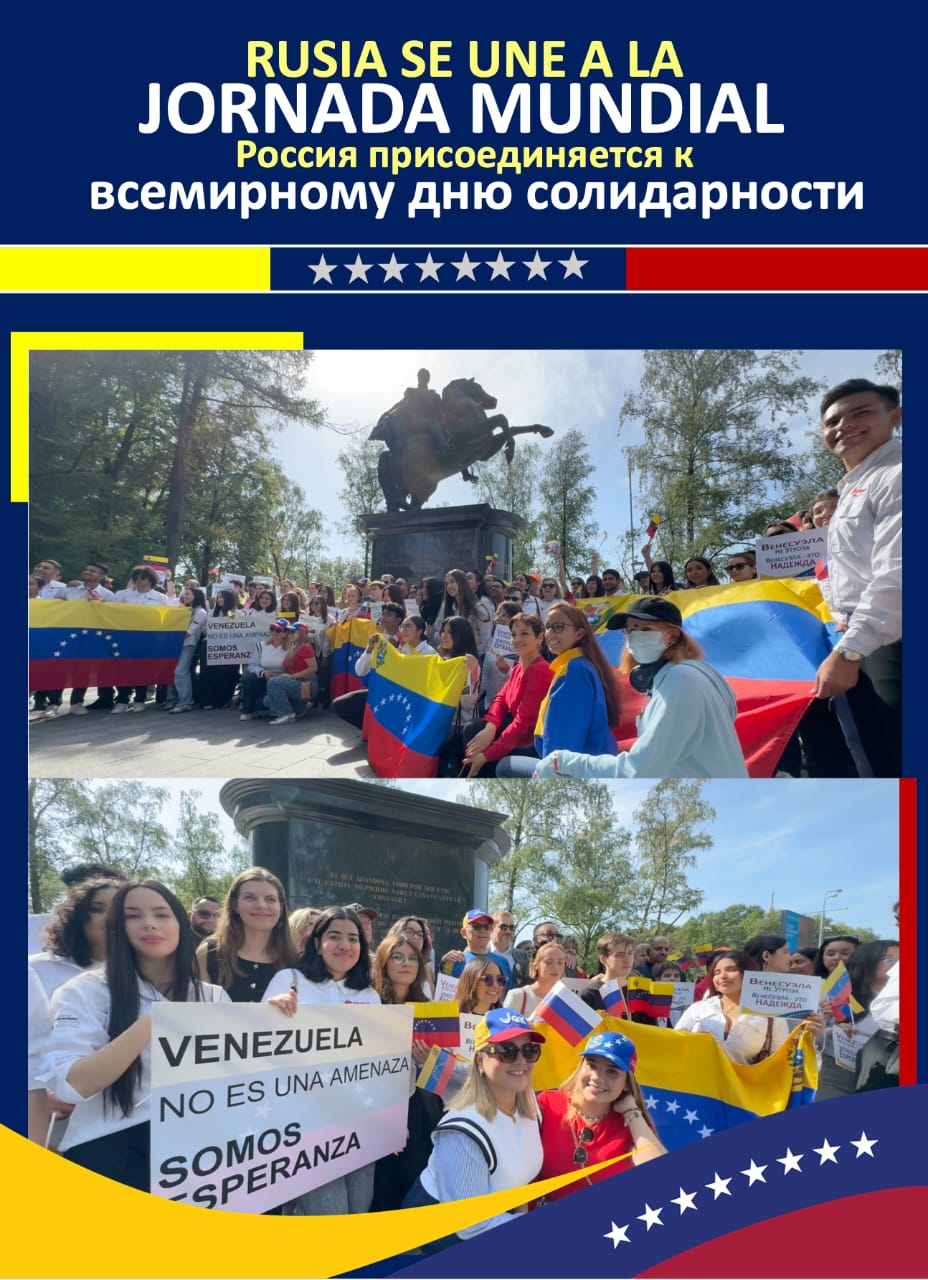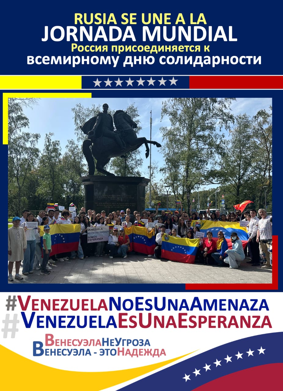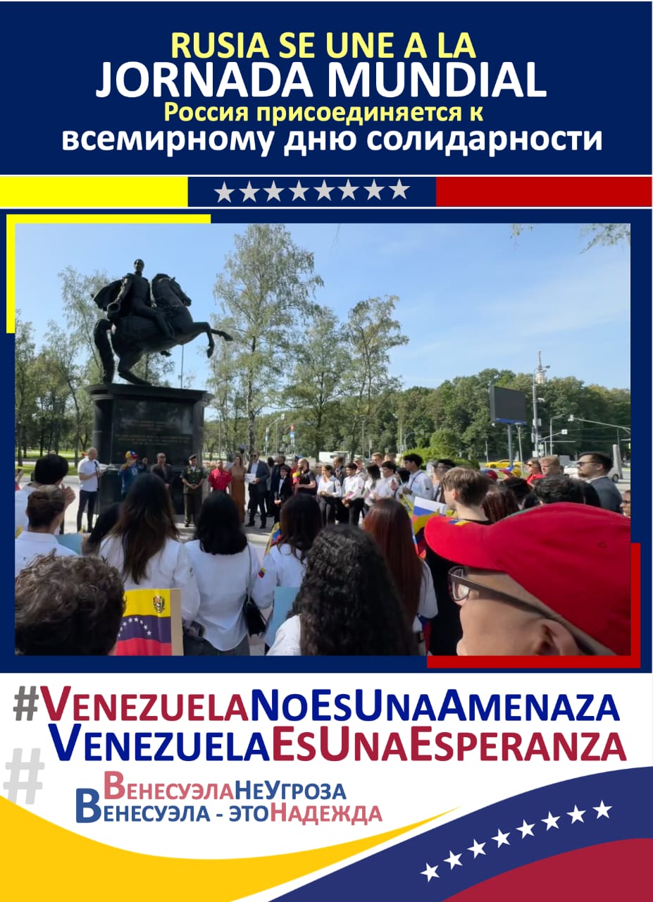 Entre banderas venezolanas y rusas que ondeaban al pie de la estatua del Libertador, el embajador de Venezuela en Rusia, Jesús Salazar Velásquez, agradeció las manifestaciones de apoyo a la paz de Venezuela y de la región de América Latina frente a las amenazas belicistas que se ciernen desde el imperio estadounidense, en una escalada sin precedentes en la historia de la región.